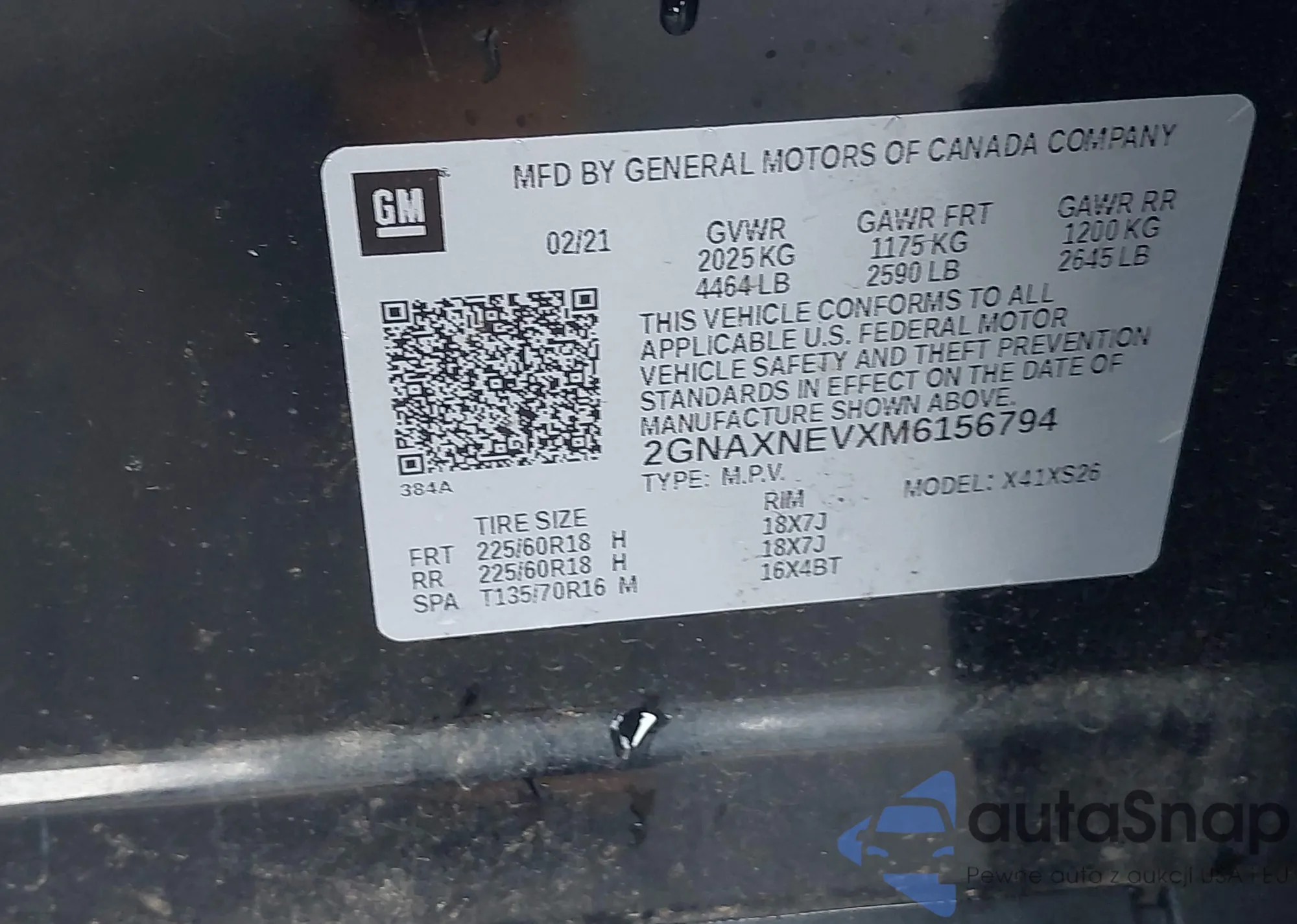 LOT: 43996962 VIN: 2GNAXNEVXM6156794
