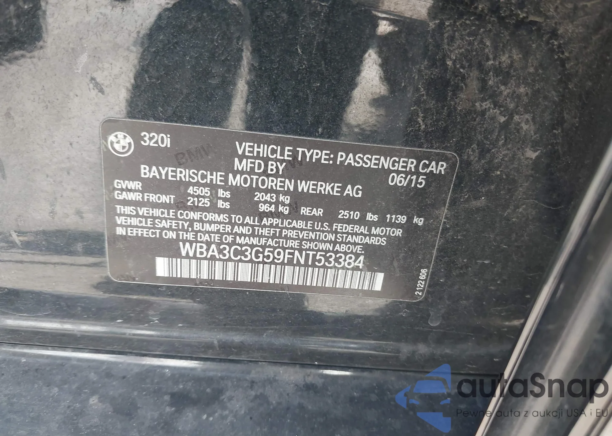 2015 BMW 320I xDrive from USA, damaged, VIN WBA3C3G59FNT53384