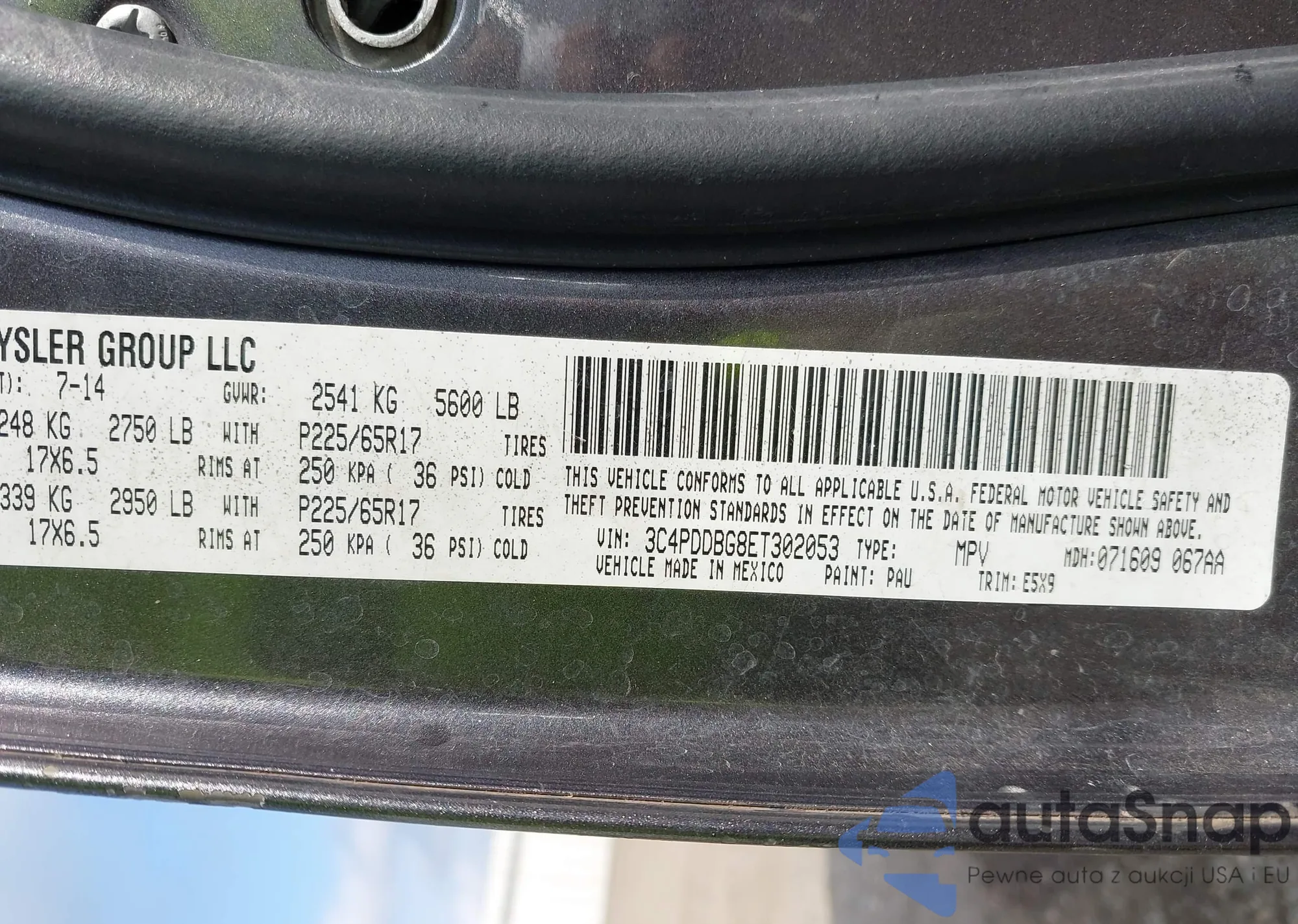 • VIN 3C4PDDBG8ET302053