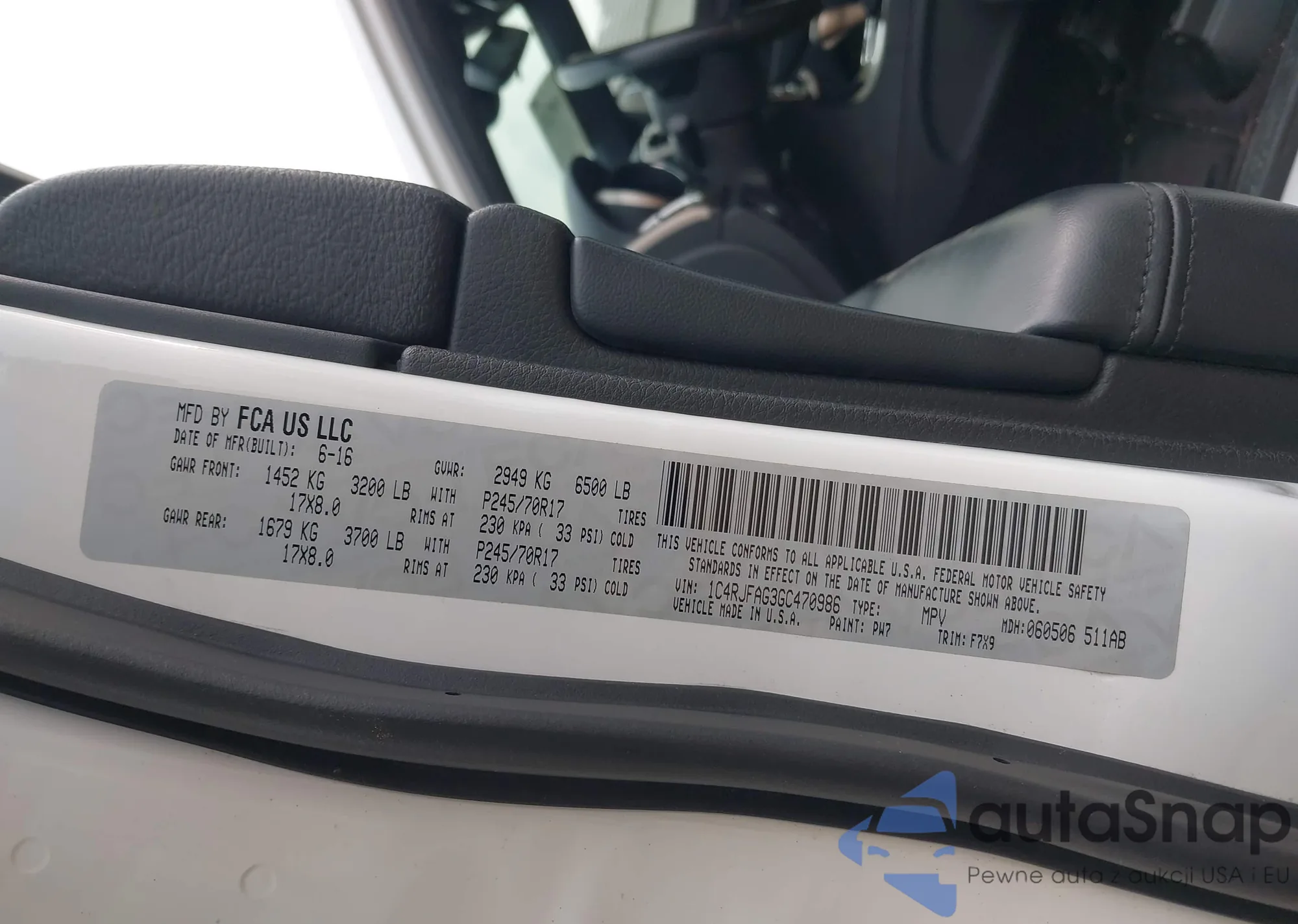 • VIN 1C4RJFAG3GC470986
