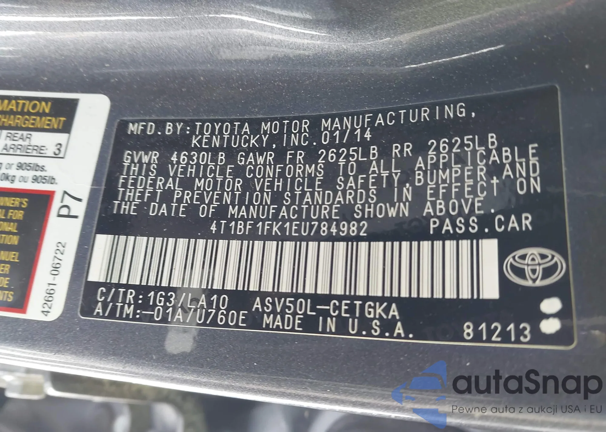 • VIN 4T1BF1FK1EU784982