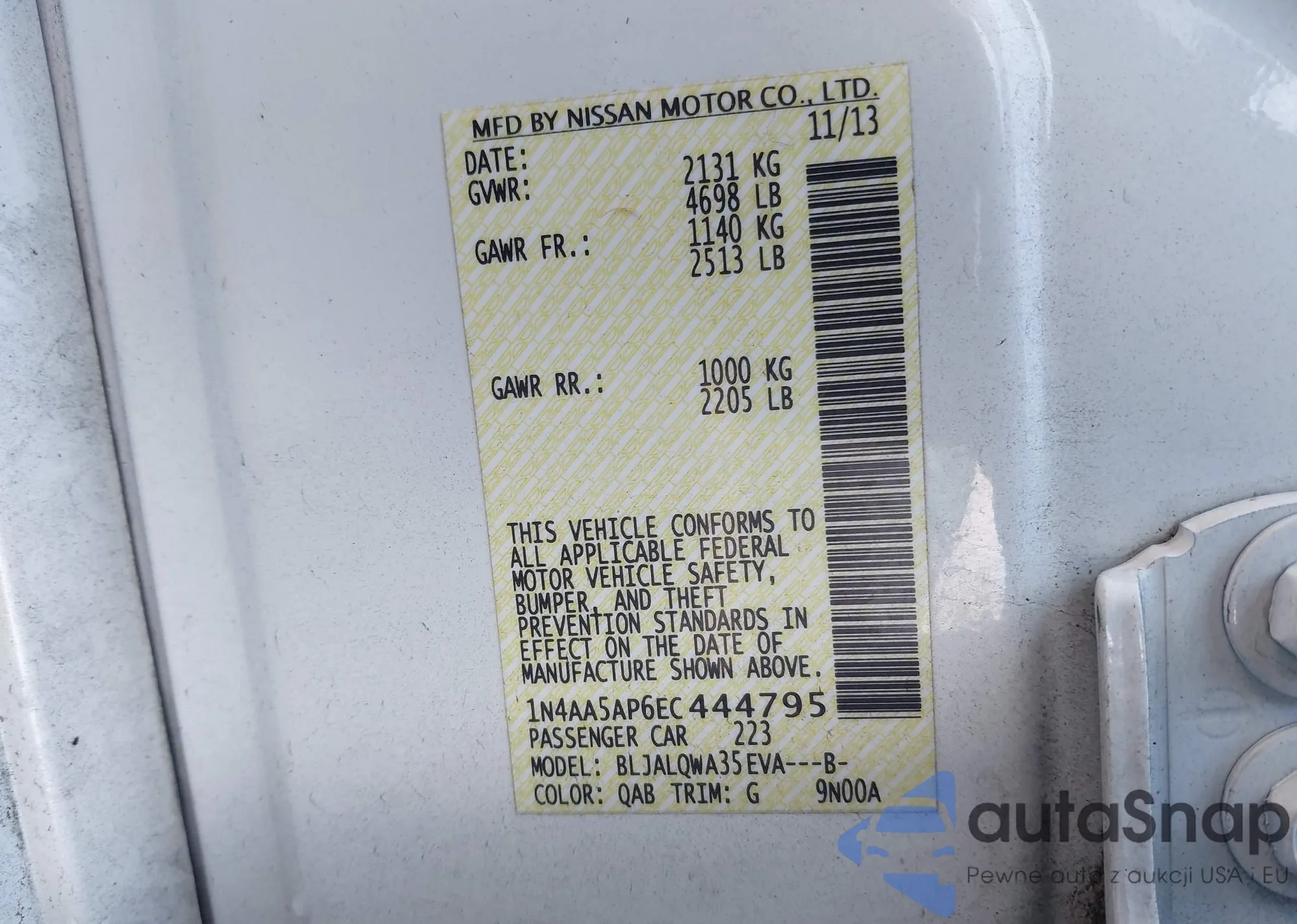 LOT: 44137146 VIN: 1N4AL2AP8BN469867