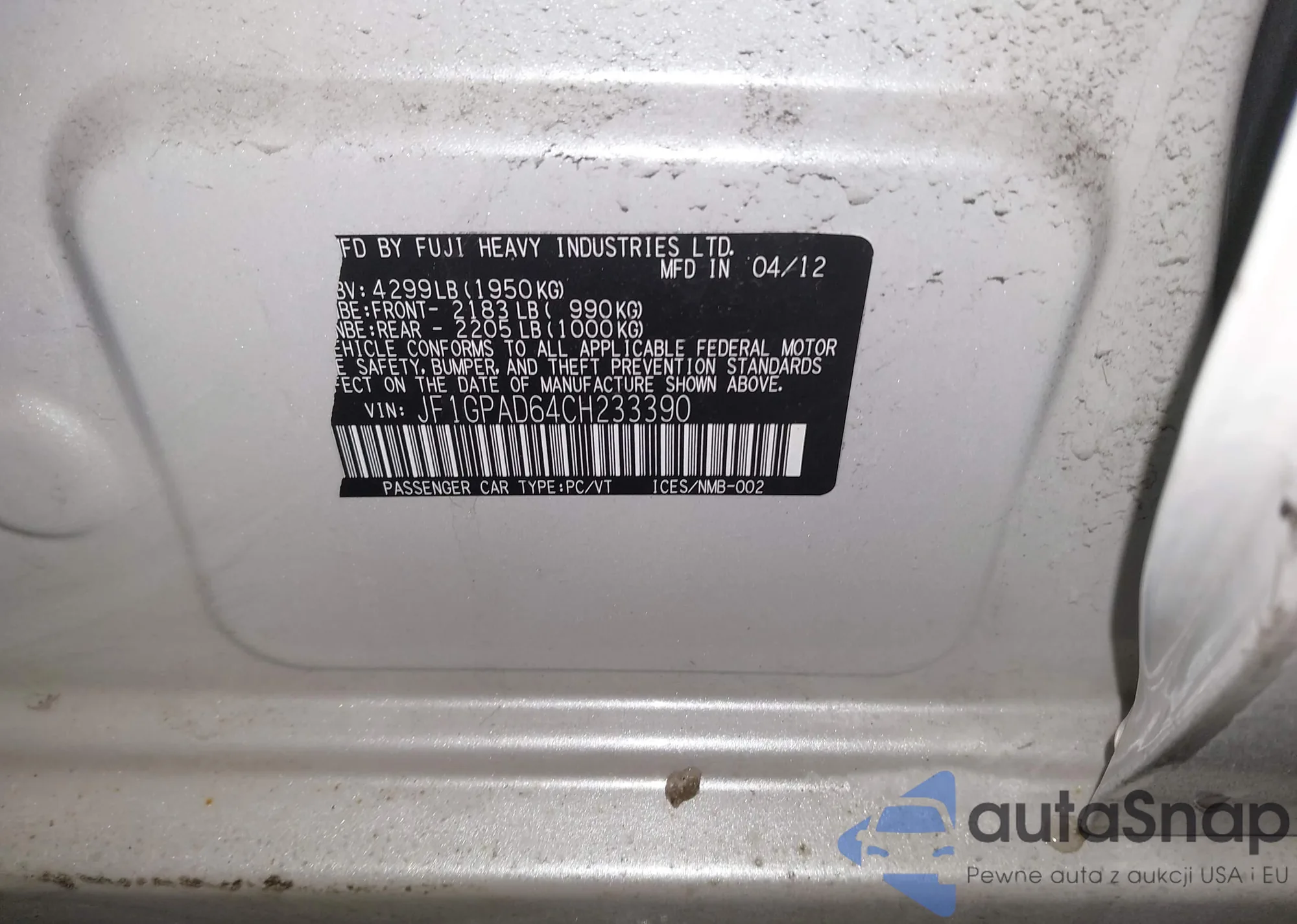• VIN JF1GPAD64CH233390