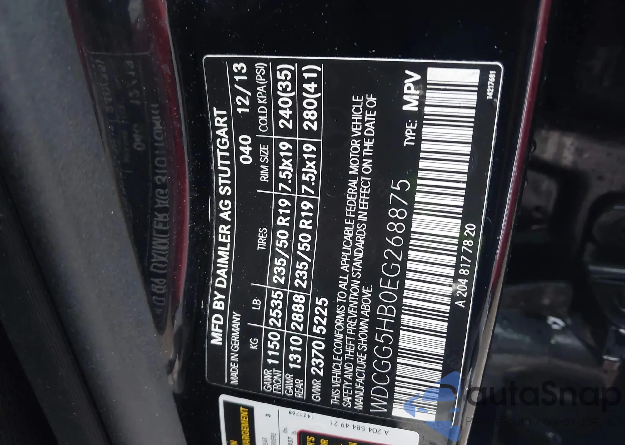 • VIN WDCGG5HB0EG268875