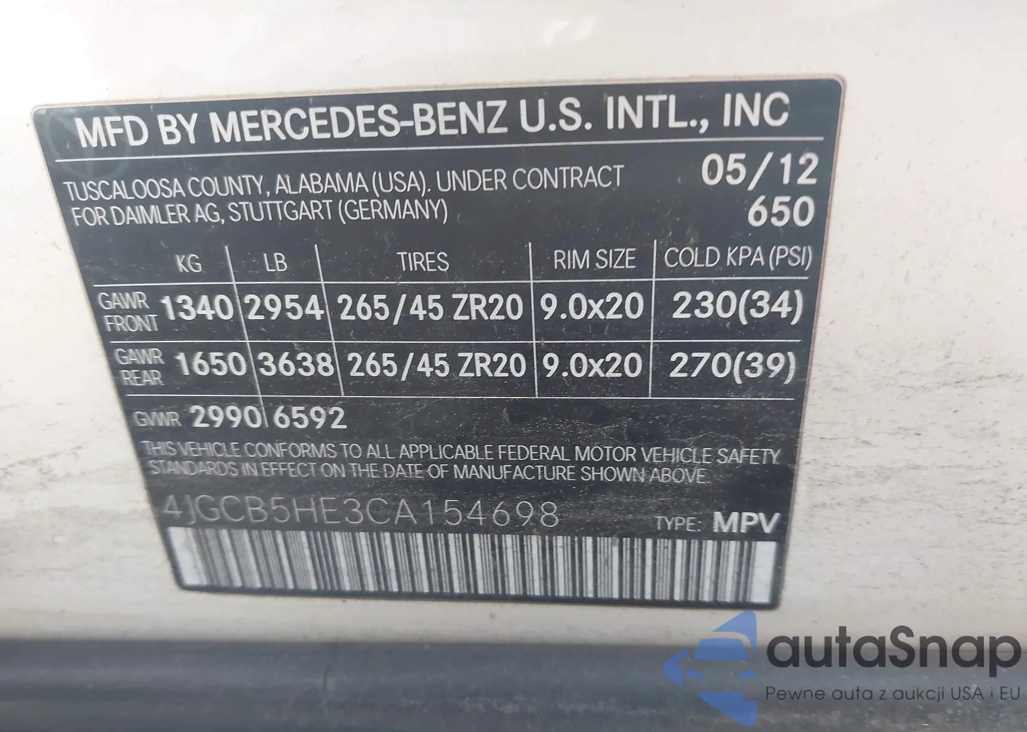 LOT: 43912765 VIN: WA1LKAFP3AA081888