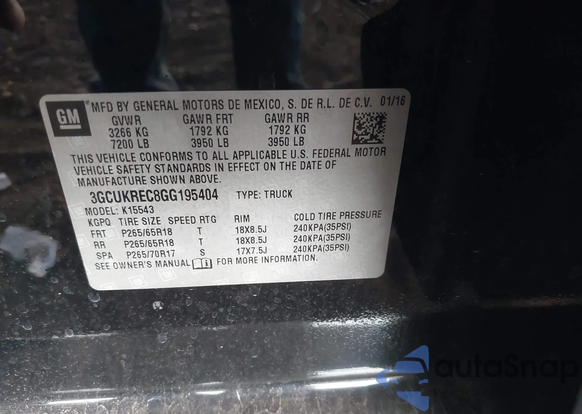 • VIN 3GCUKREC8GG195404