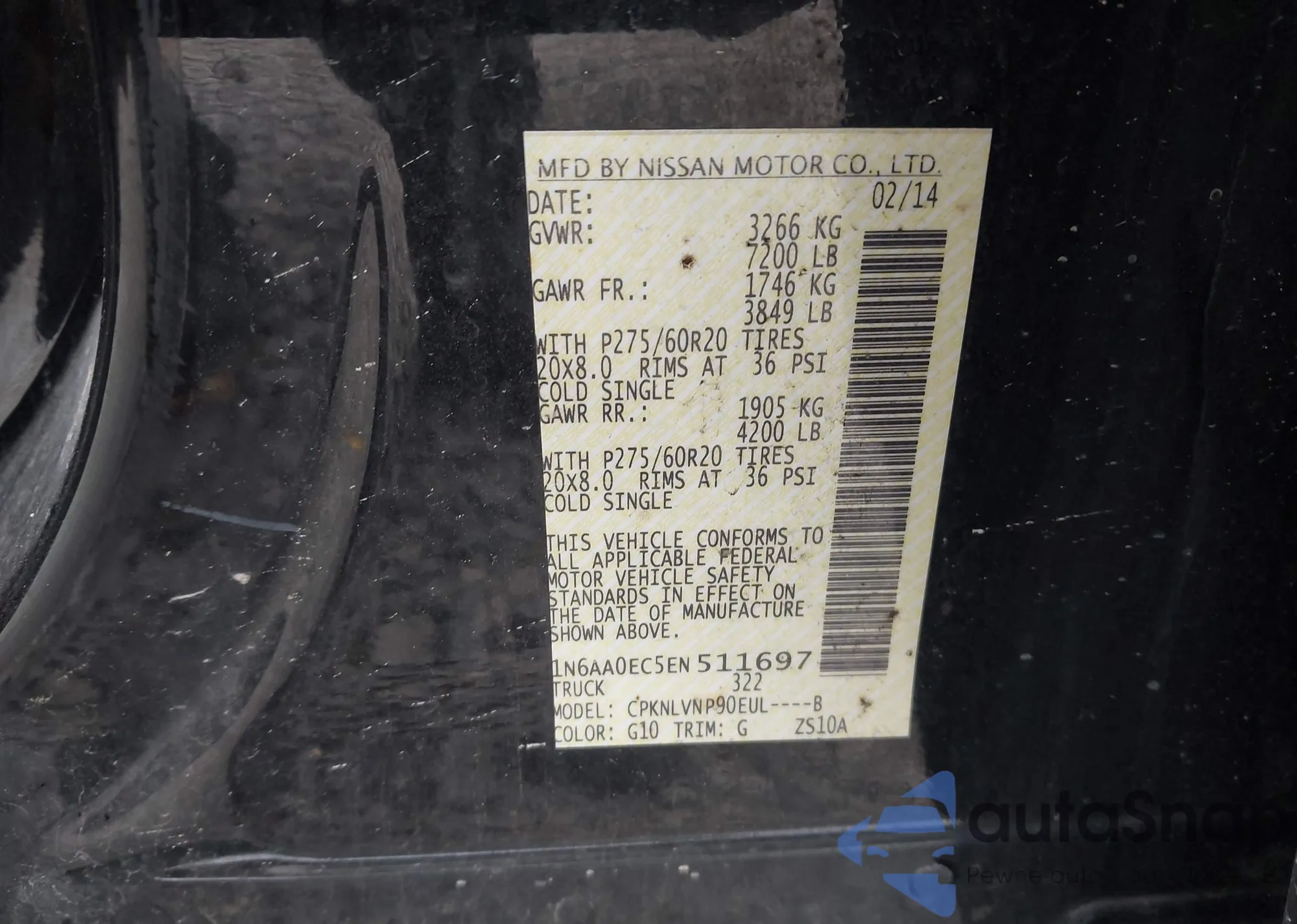 • VIN 1N6AA0EC5EN511697
