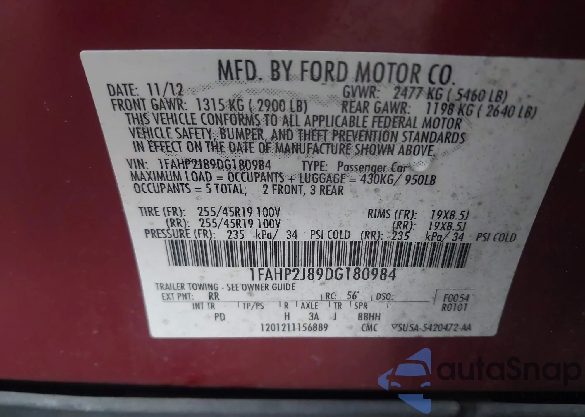 • VIN 1FAHP2J89DG180984