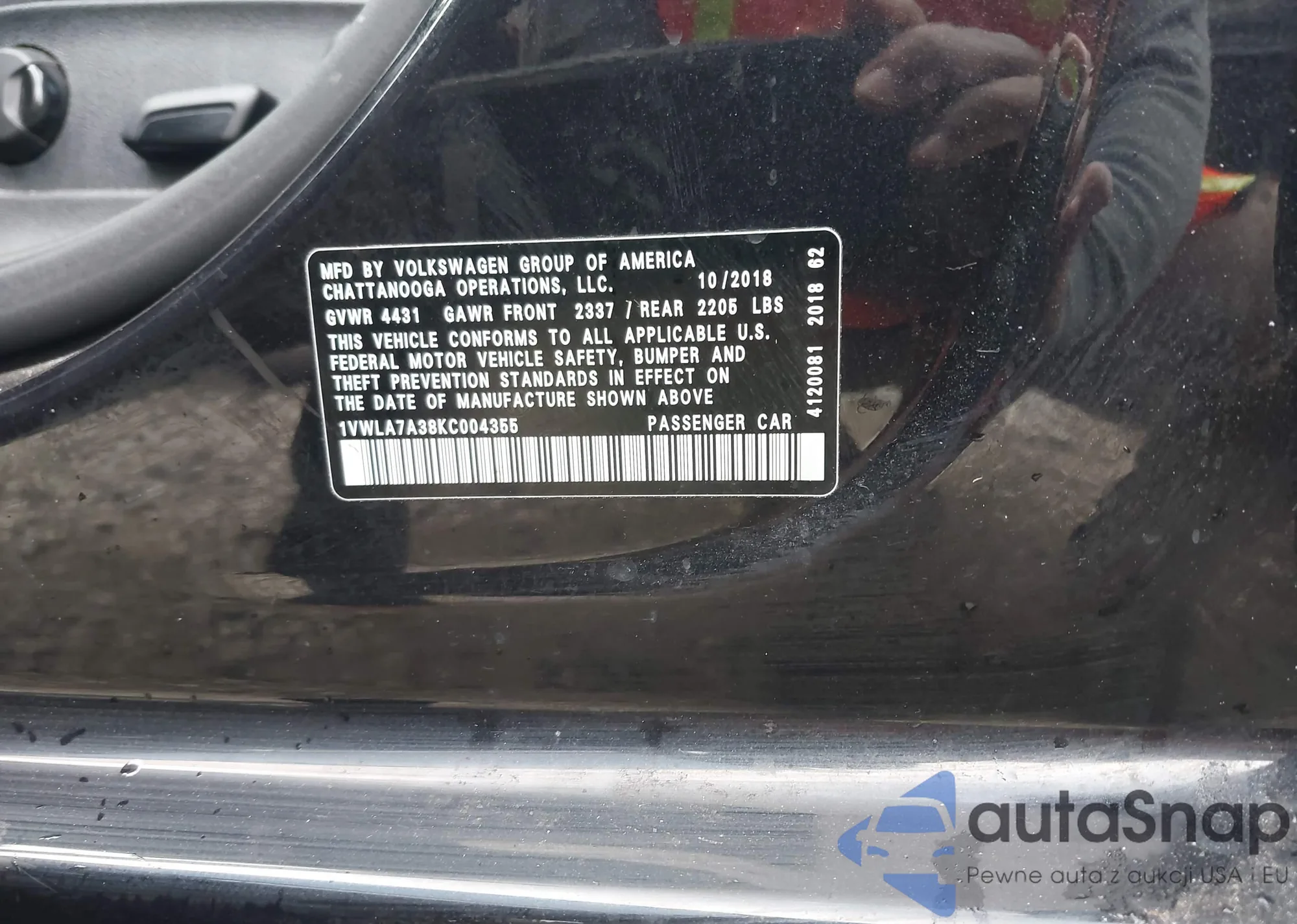 LOT: 44004933 VIN: 1VWLA7A38KC004355