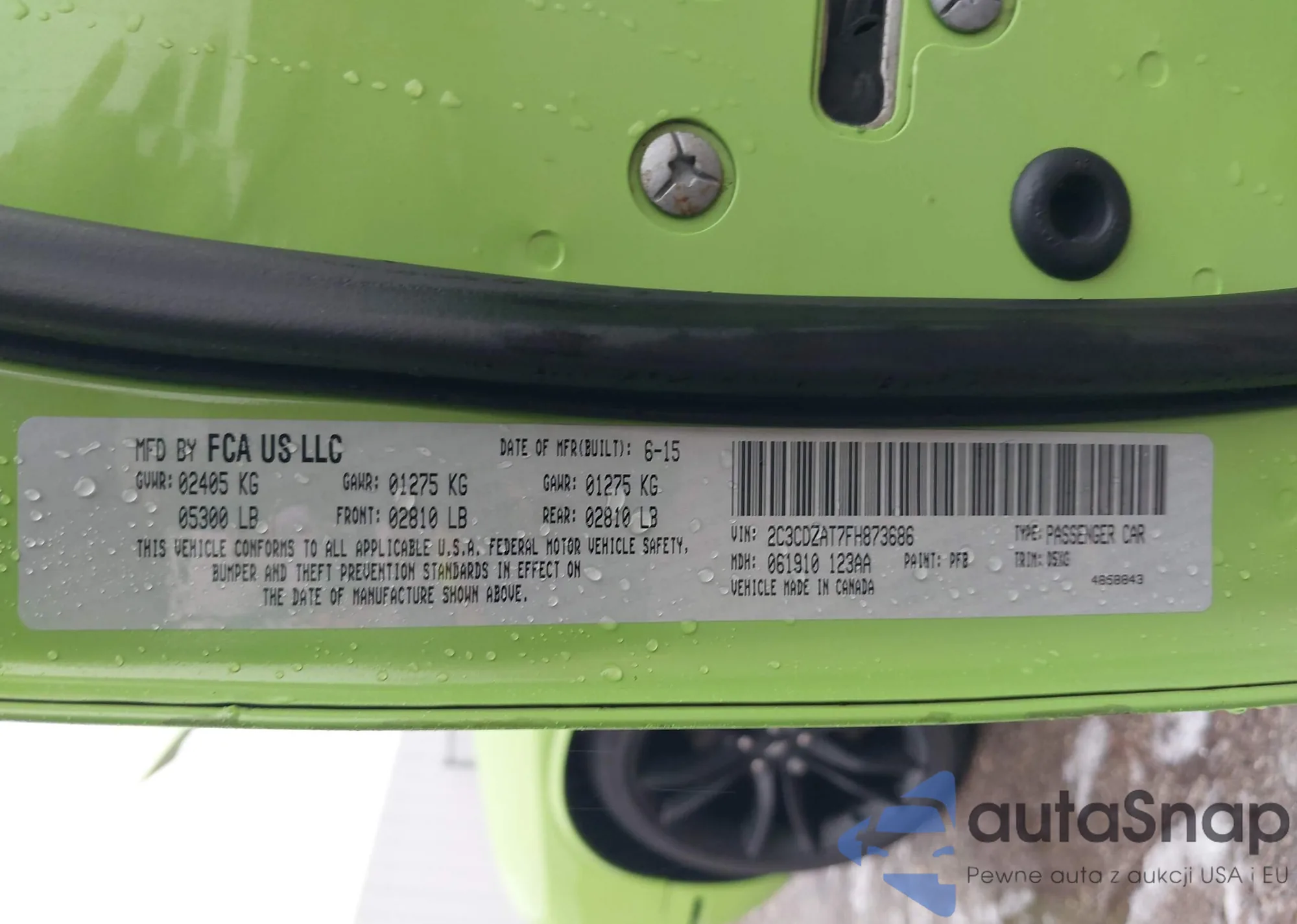 2015 Dodge Challenger R/T from USA, damaged, VIN 2C3CDZAT7FH873686