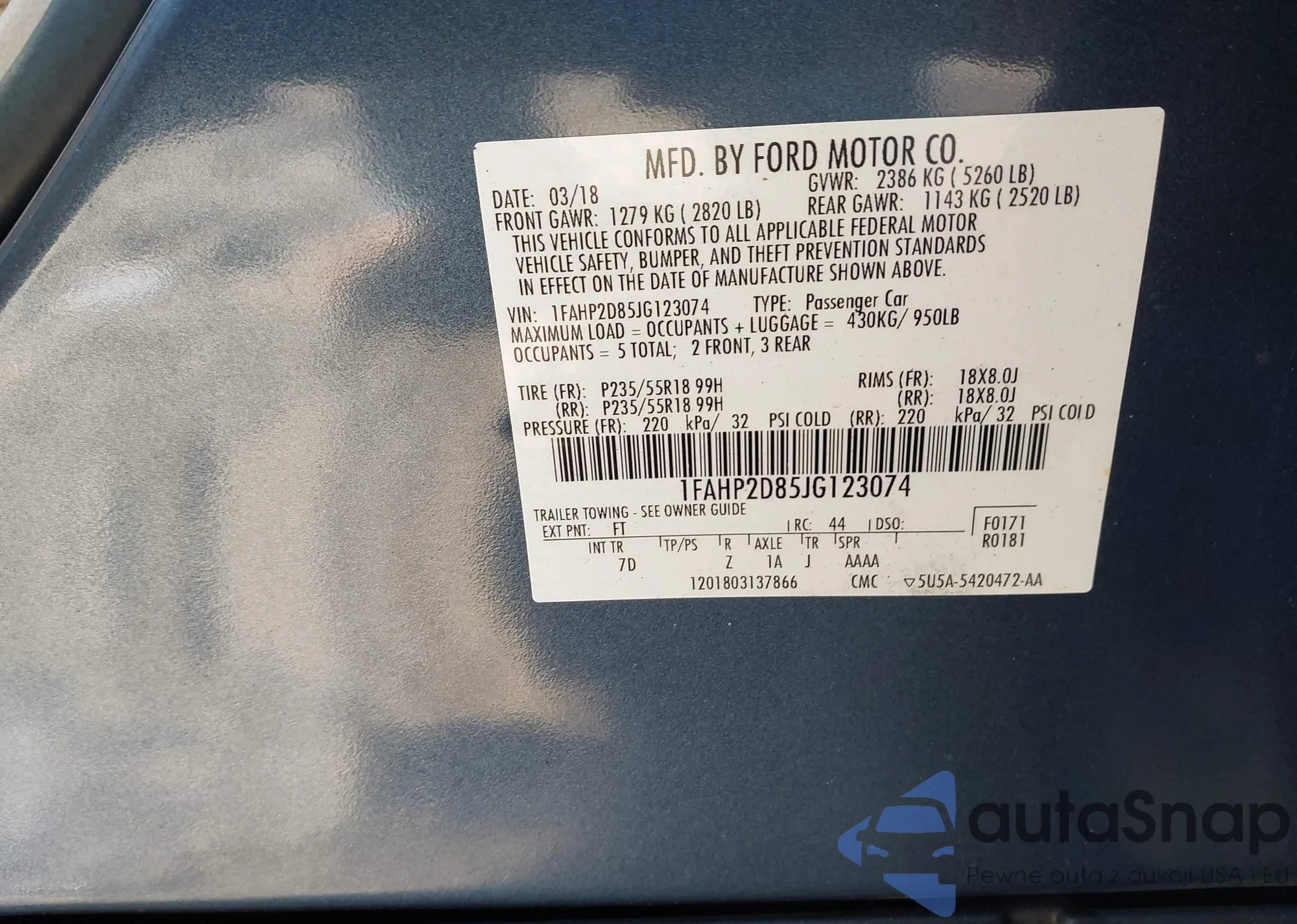 • VIN 1FAHP2D85JG123074
