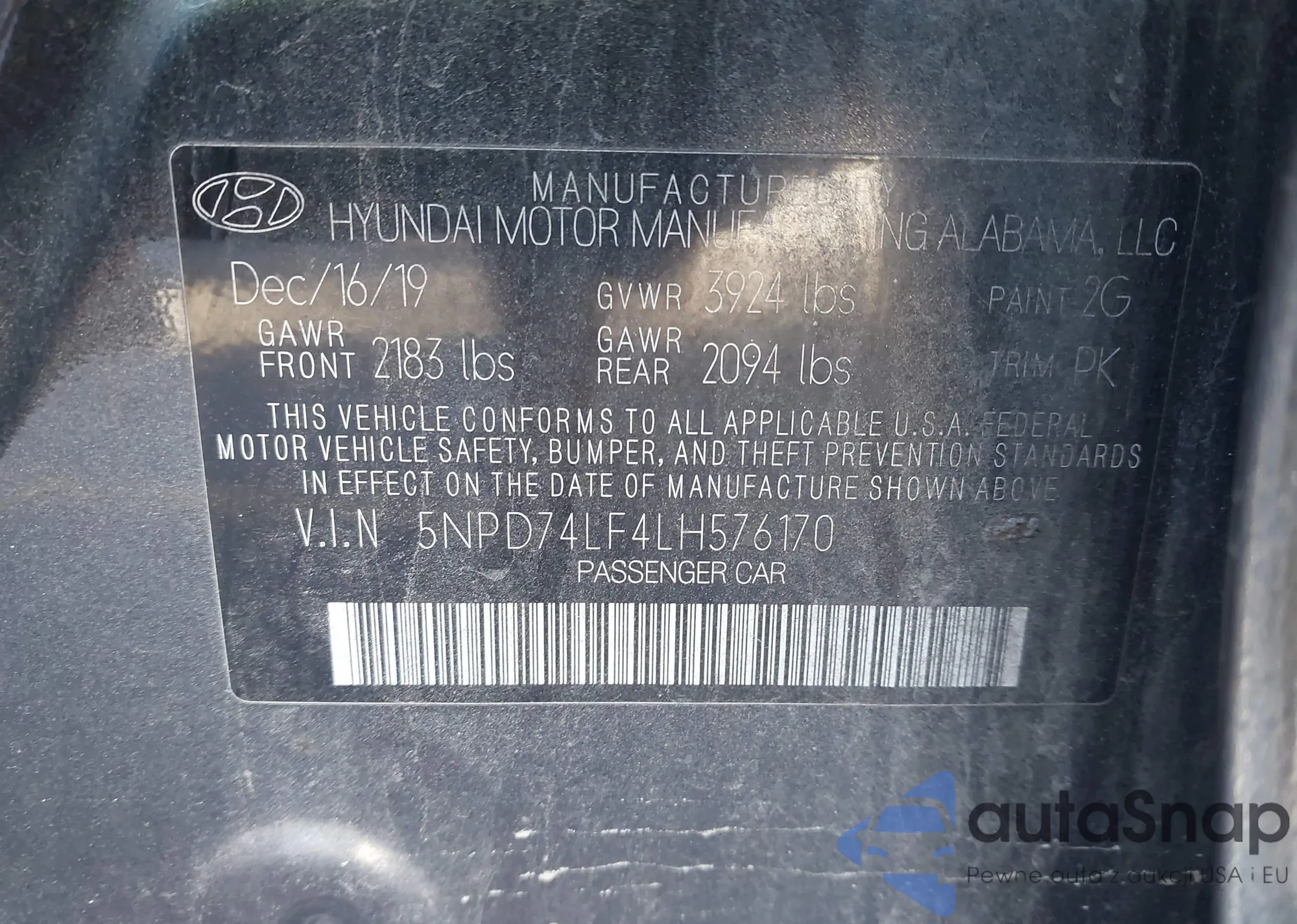 • VIN 5NPD74LF4LH576170