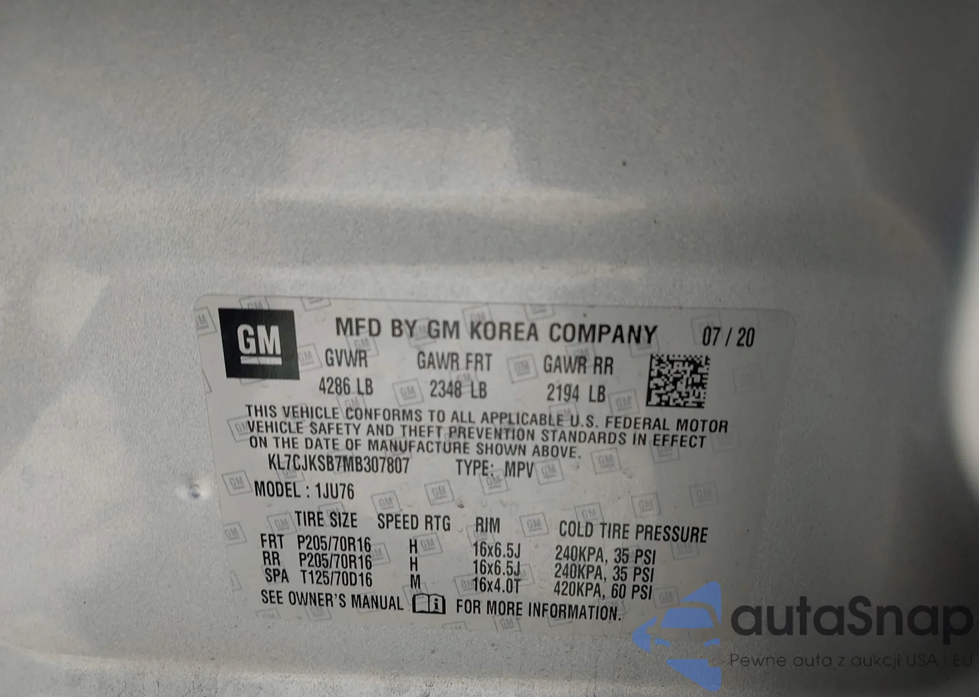 • VIN KL7CJKSB7MB307807