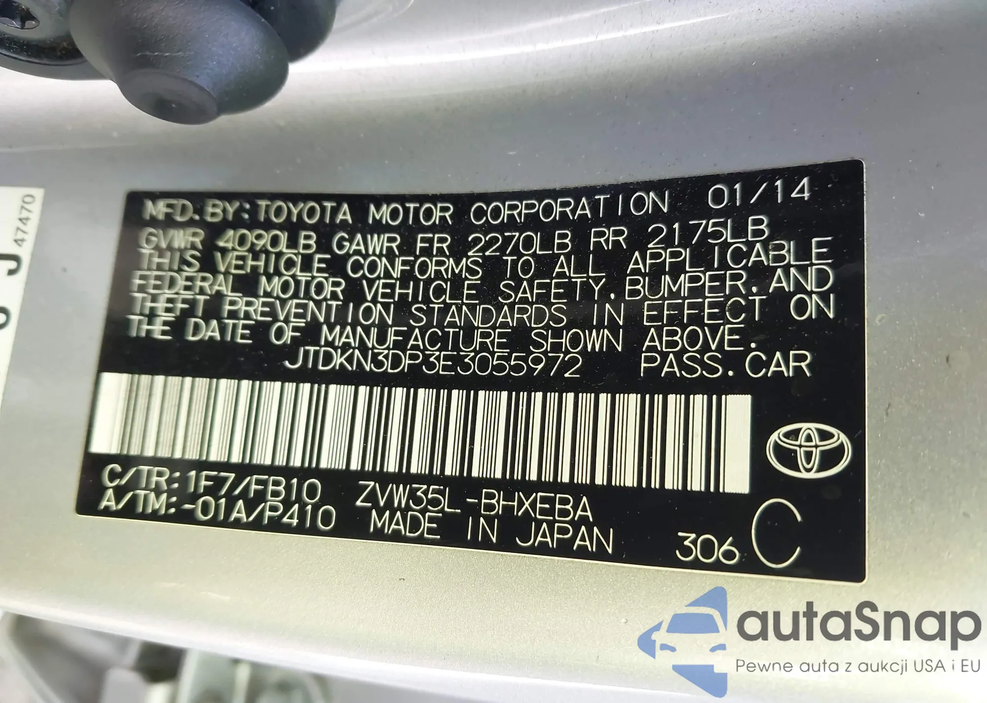LOT: 43762200 VIN: JTDKN3DP3E3055972