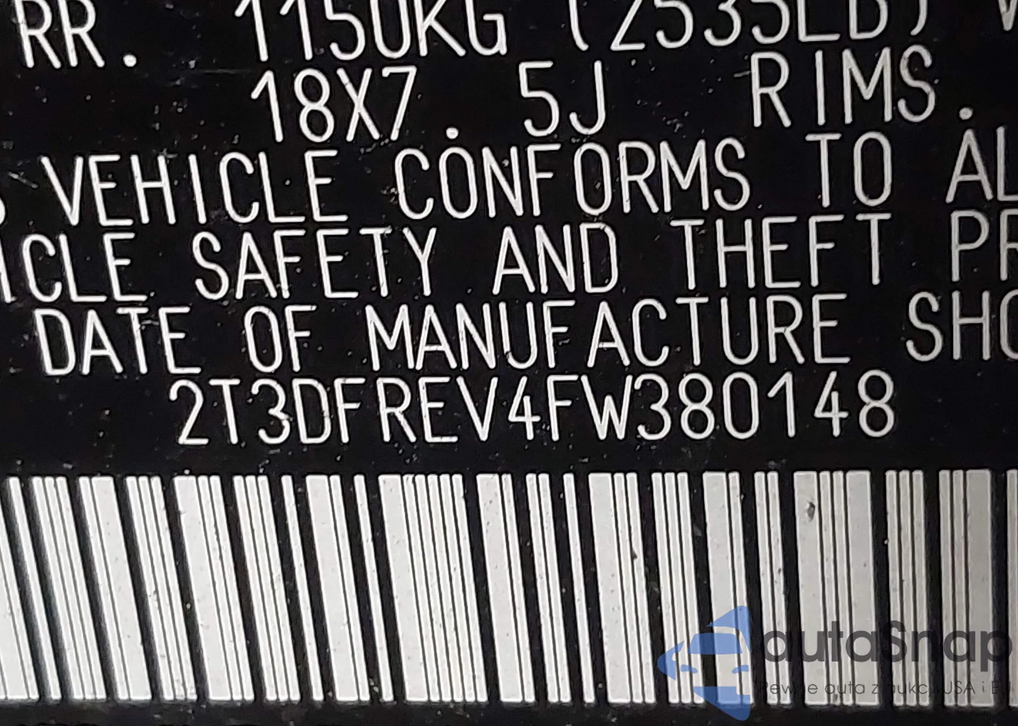 • VIN 2T3DFREV4FW380148