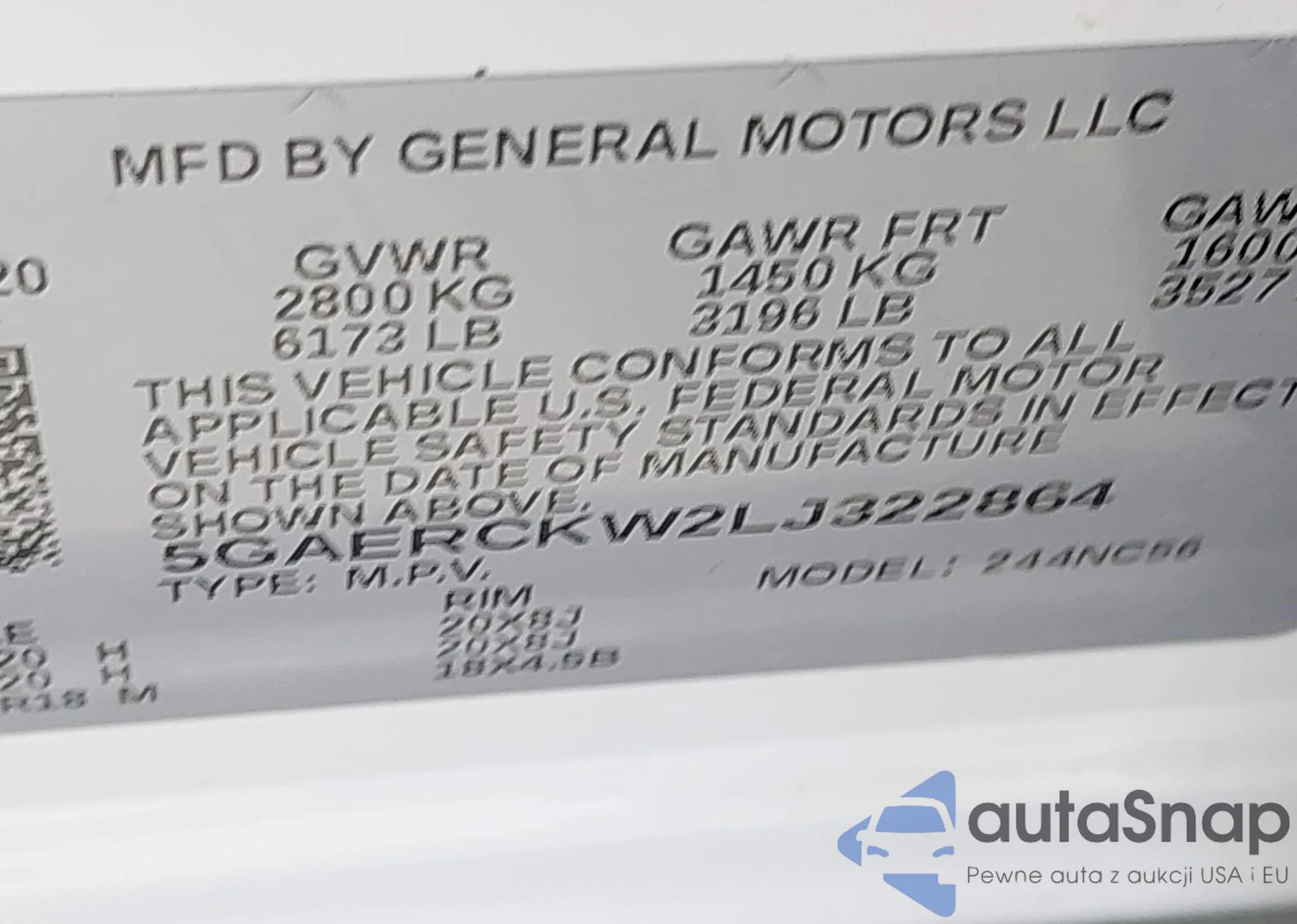 LOT: 43823245 VIN: 5GAERCKW2LJ322864