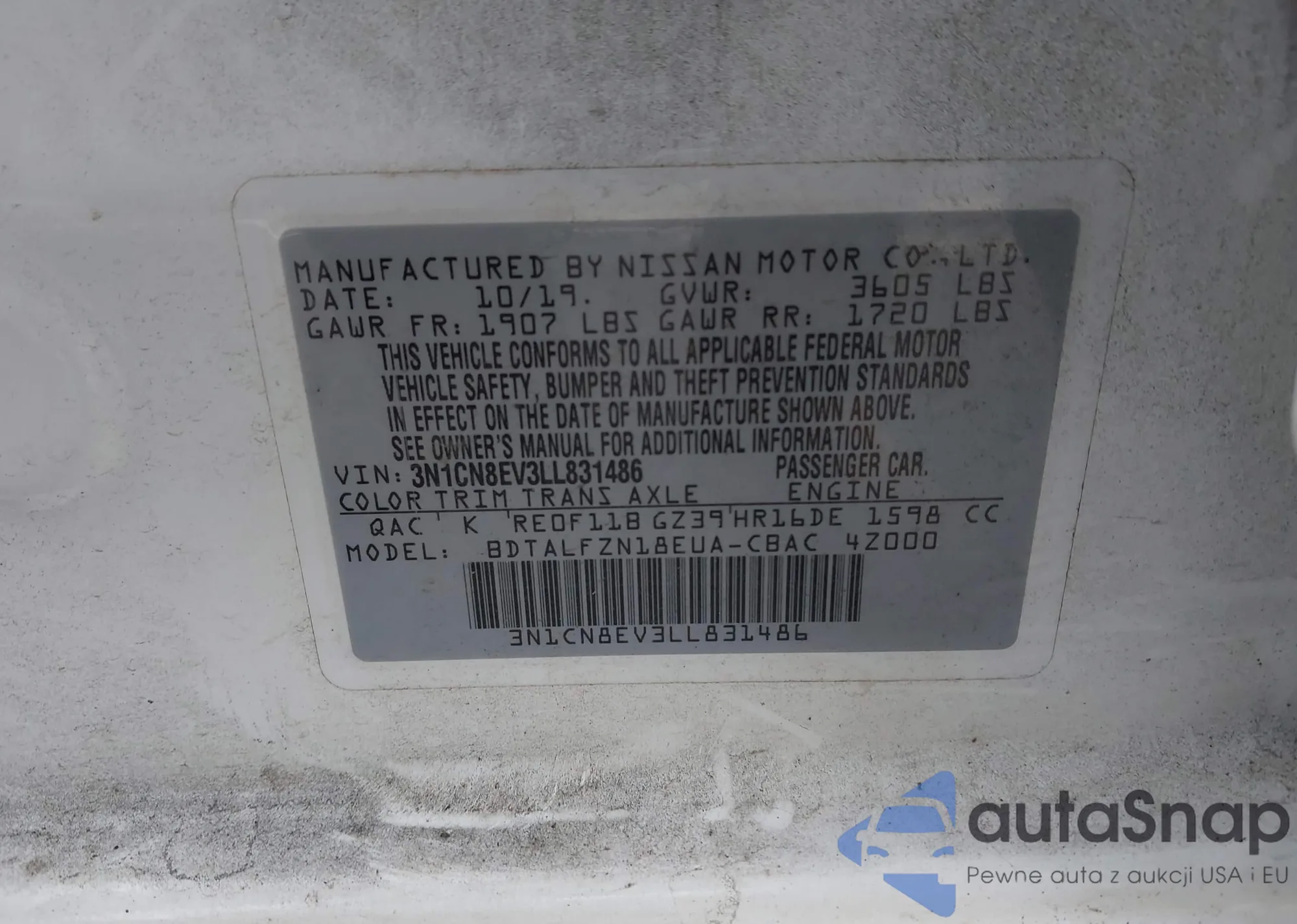 • VIN 3N1CN8EV3LL831486