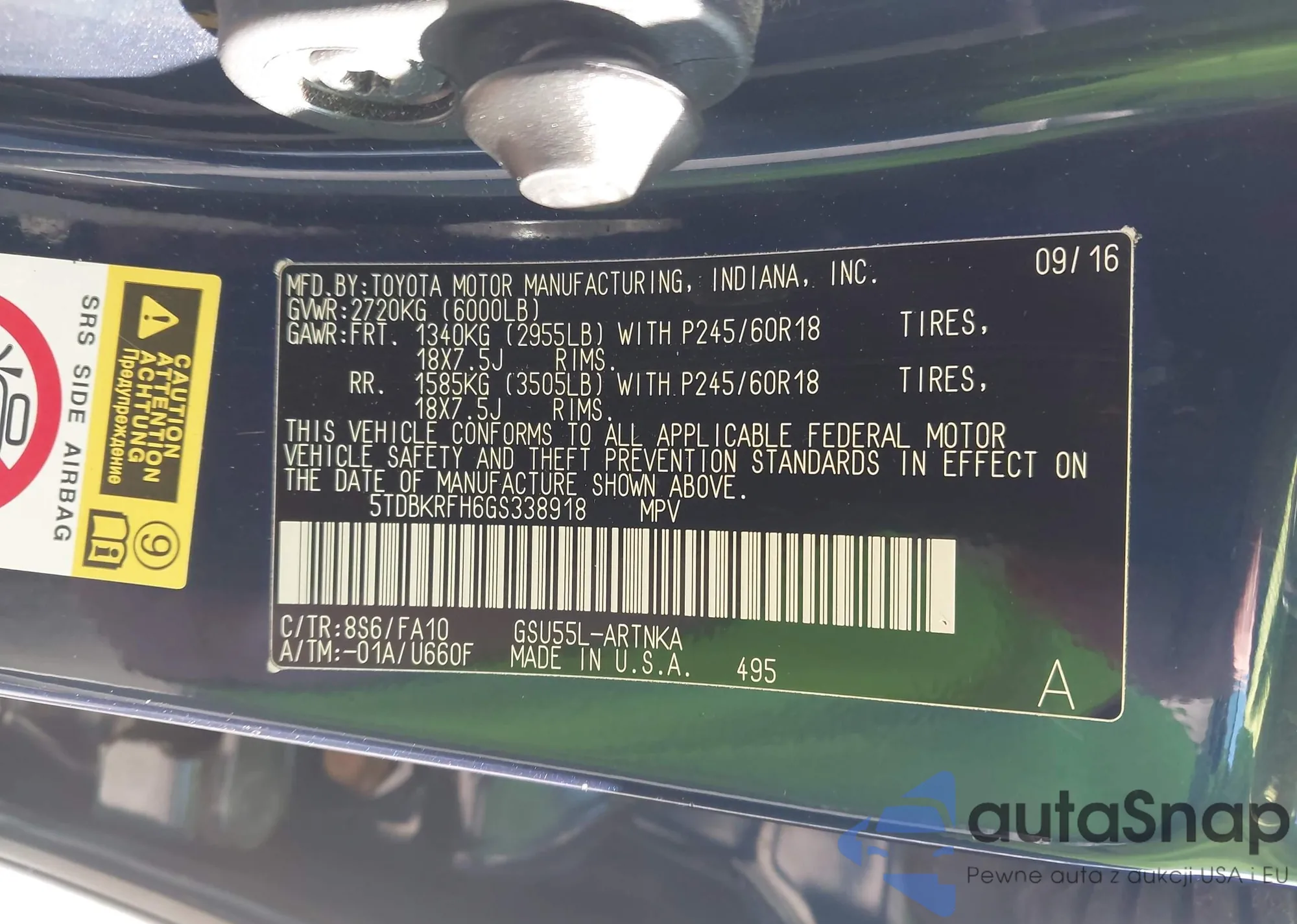 • VIN 5TDBKRFH6GS338918