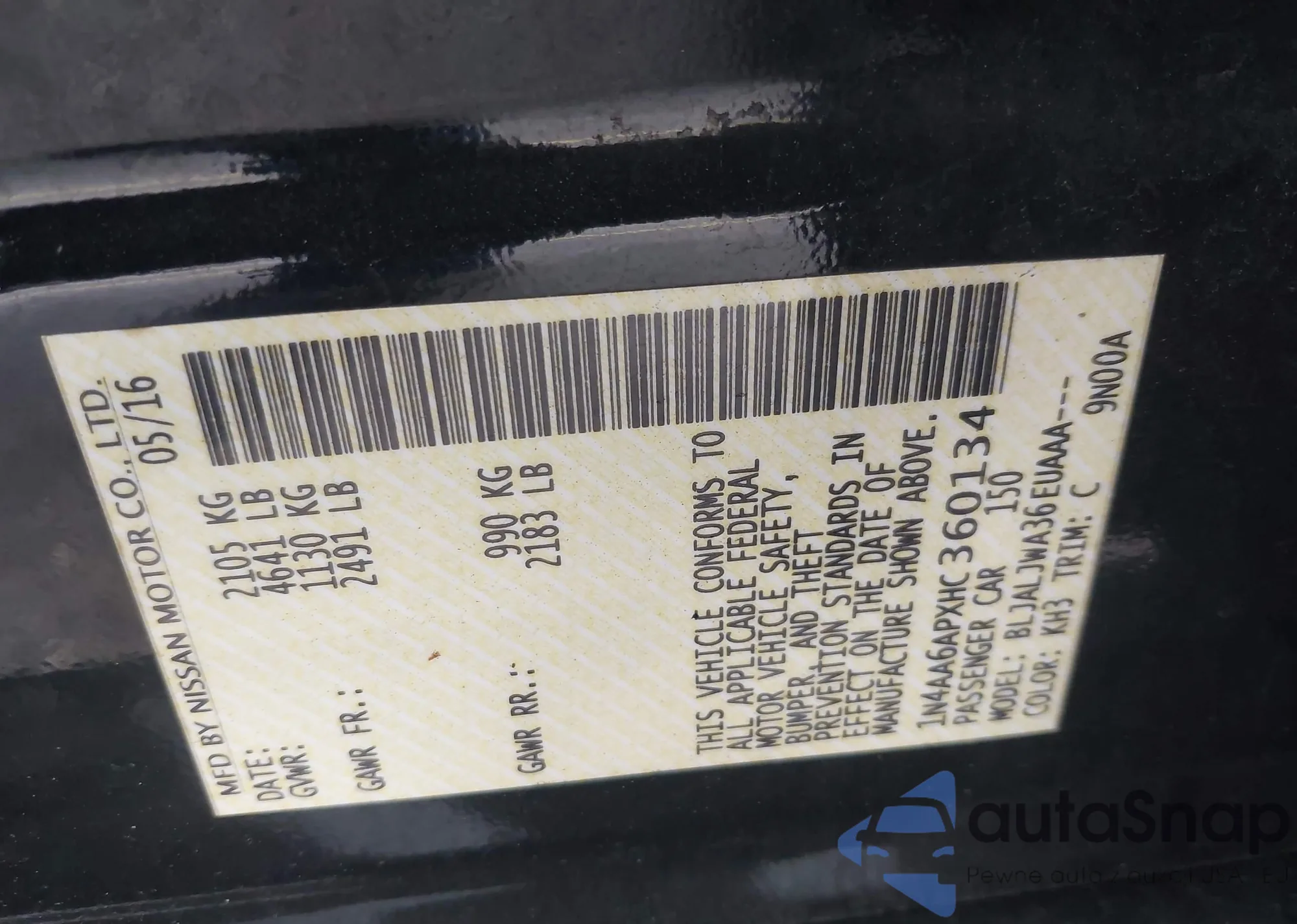 • VIN 1N4AA6APXHC360134