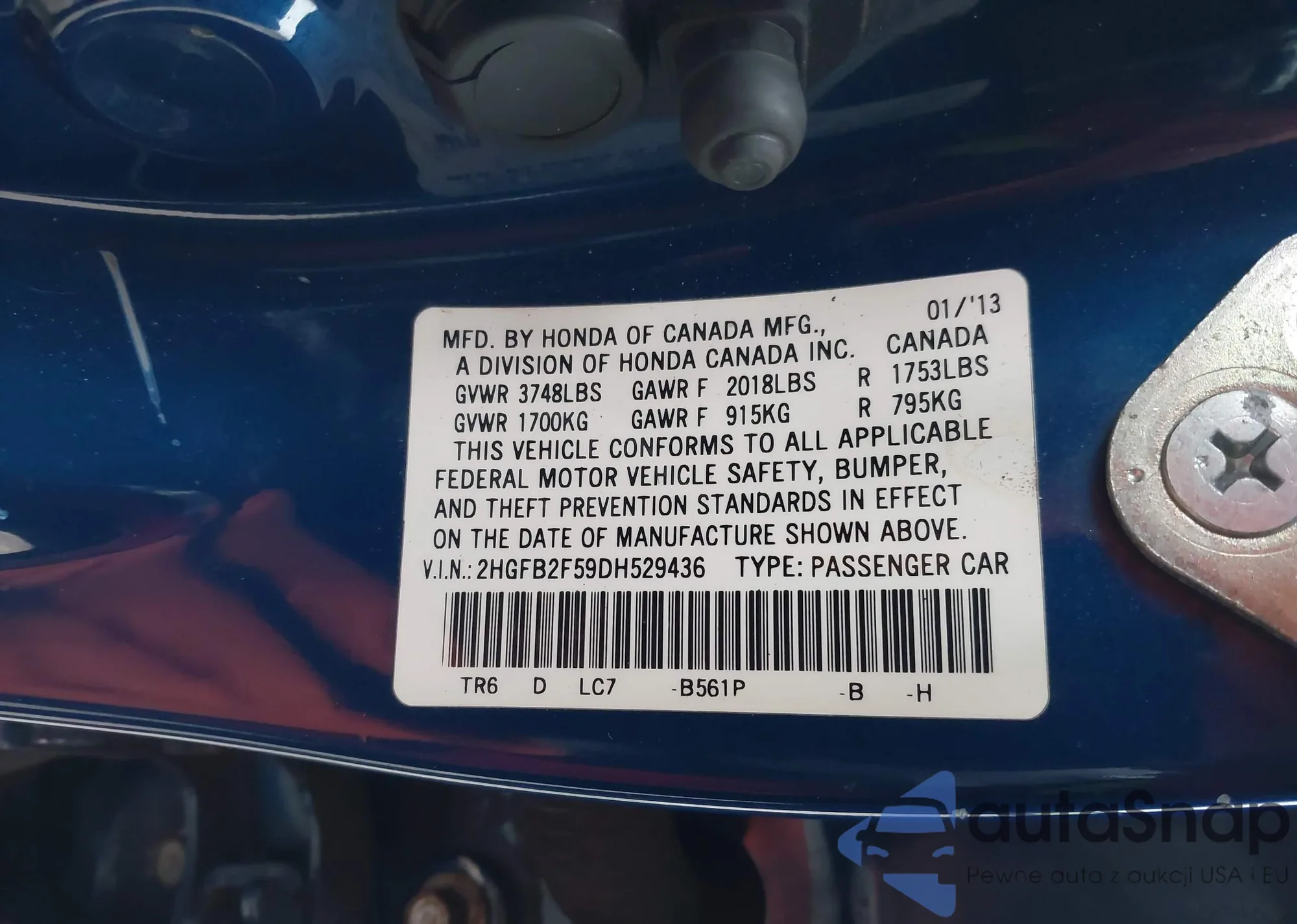 LOT: 43870757 VIN: 1HGCR2F52EA008718