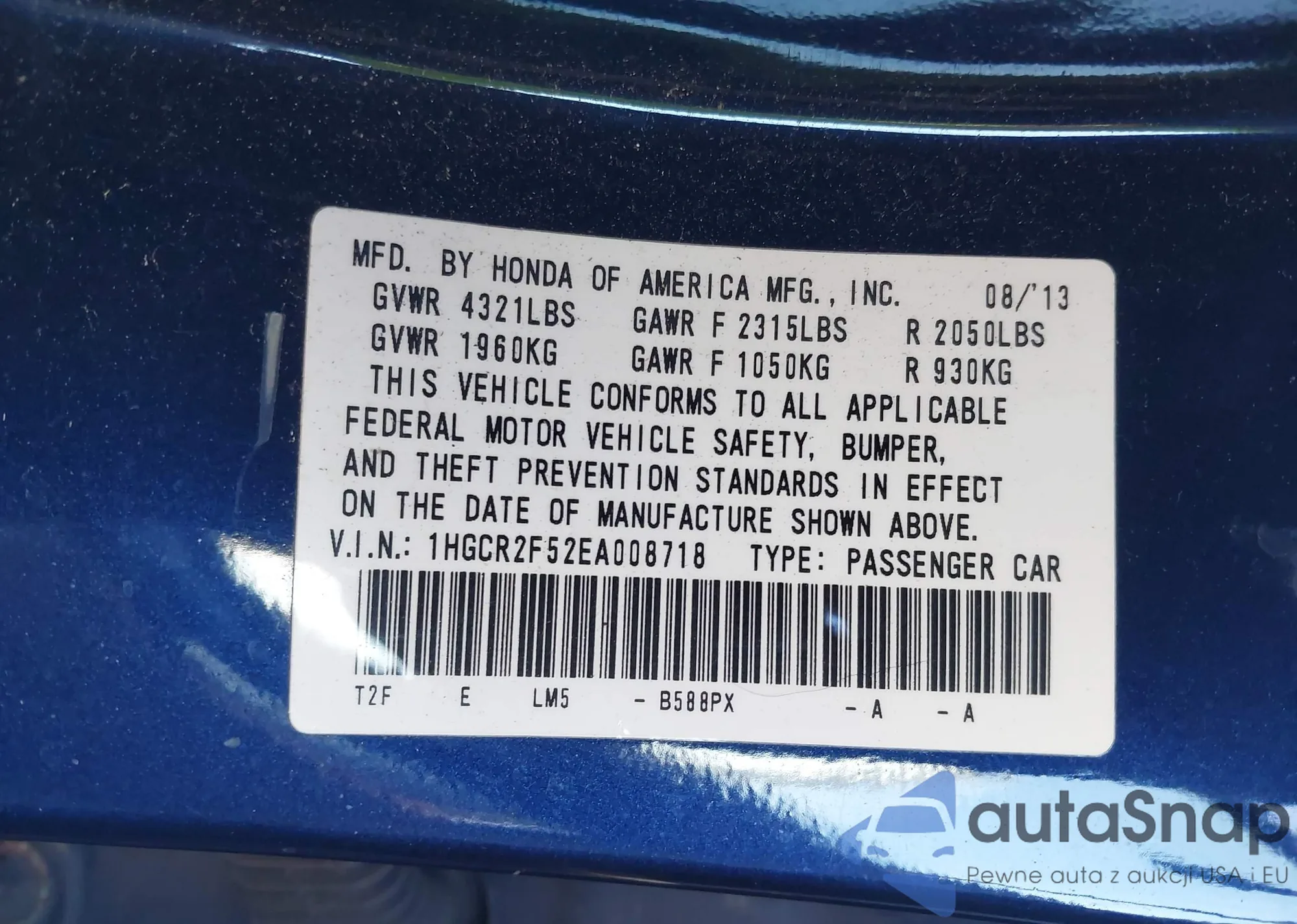 • VIN 1HGCR2F52EA008718