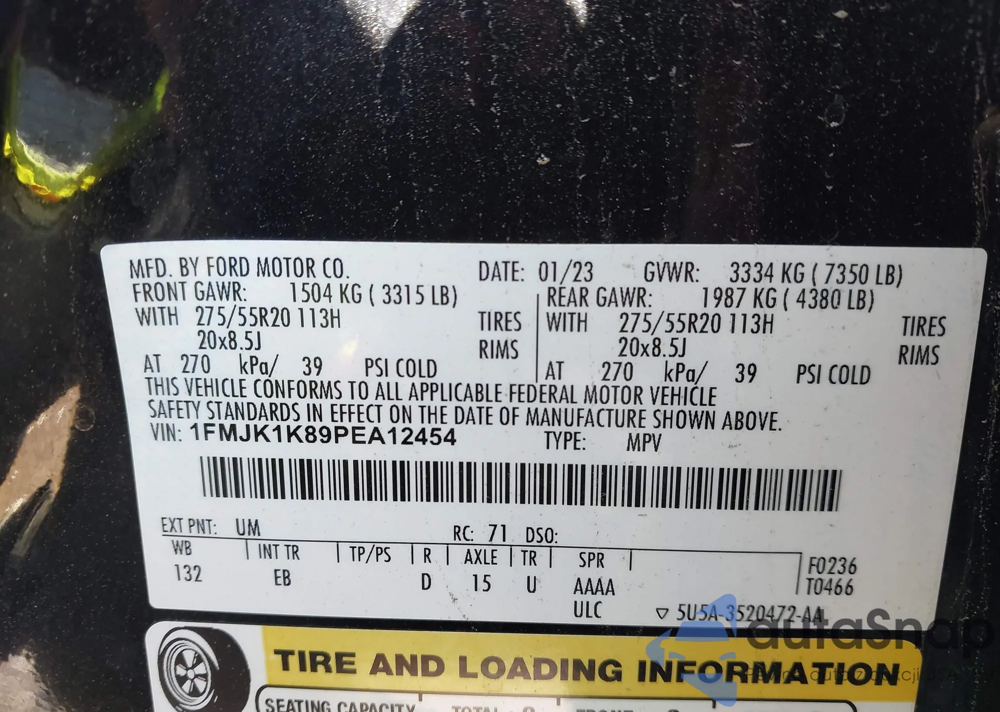 • VIN 1FMJK1K89PEA12454