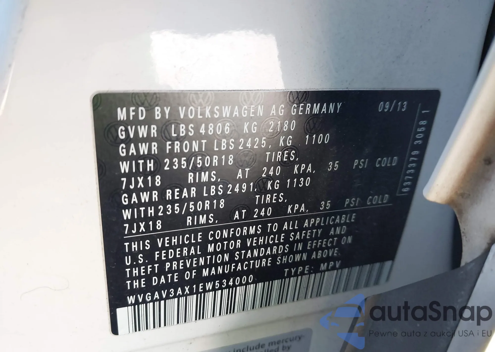 LOT: 44014671 VIN: WVGAV3AX1EW534000