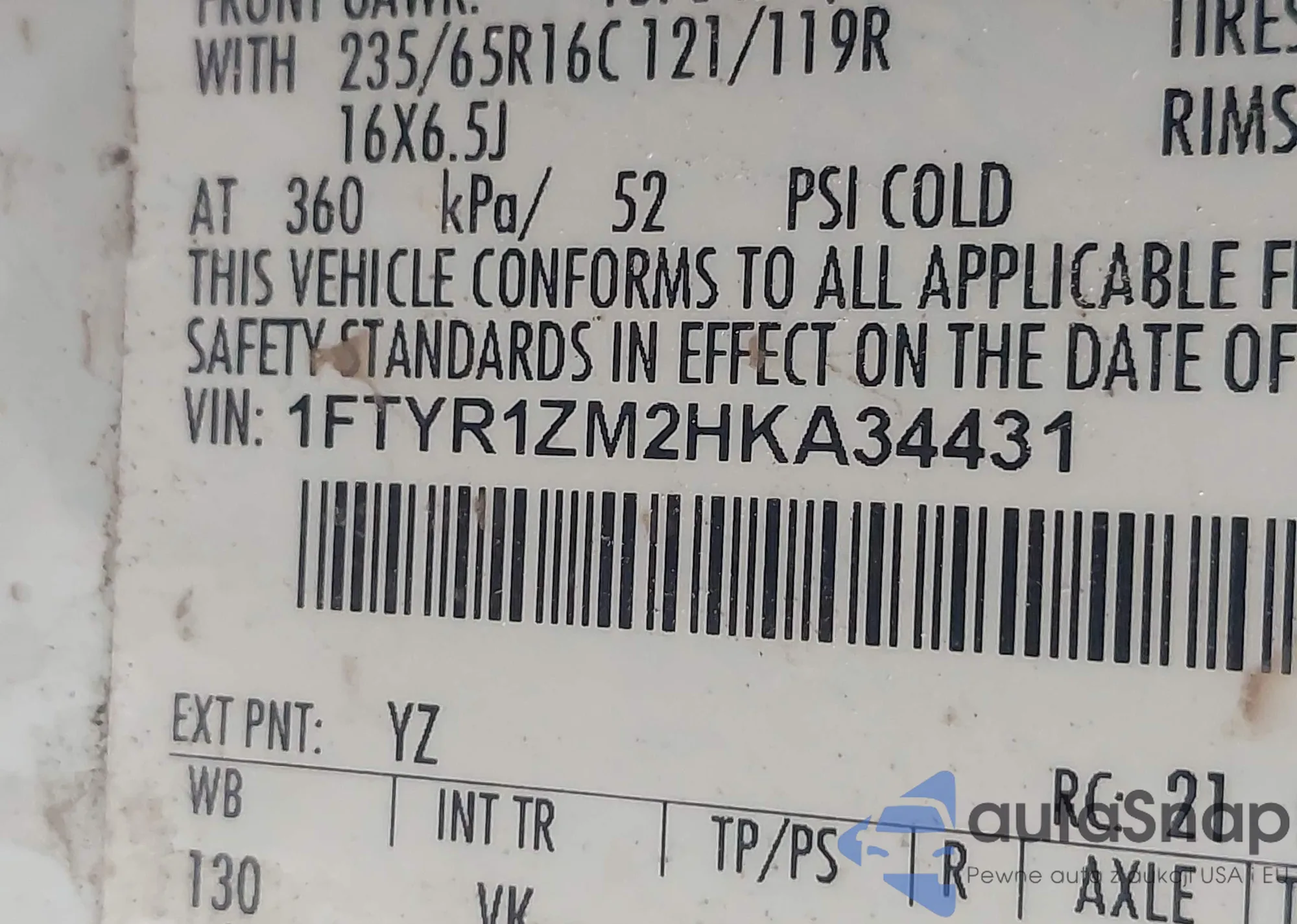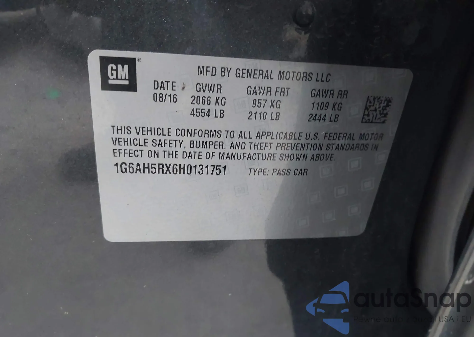 • VIN 1G6AH5RX6H0131751