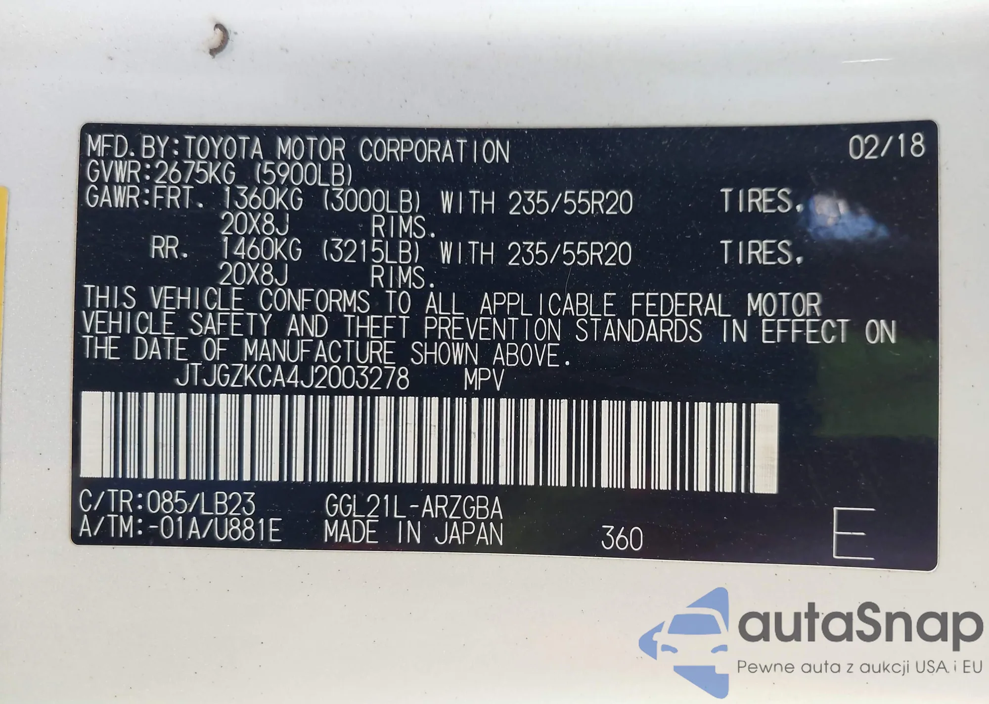 LOT: 43809711 VIN: JTEBU14R78K011181