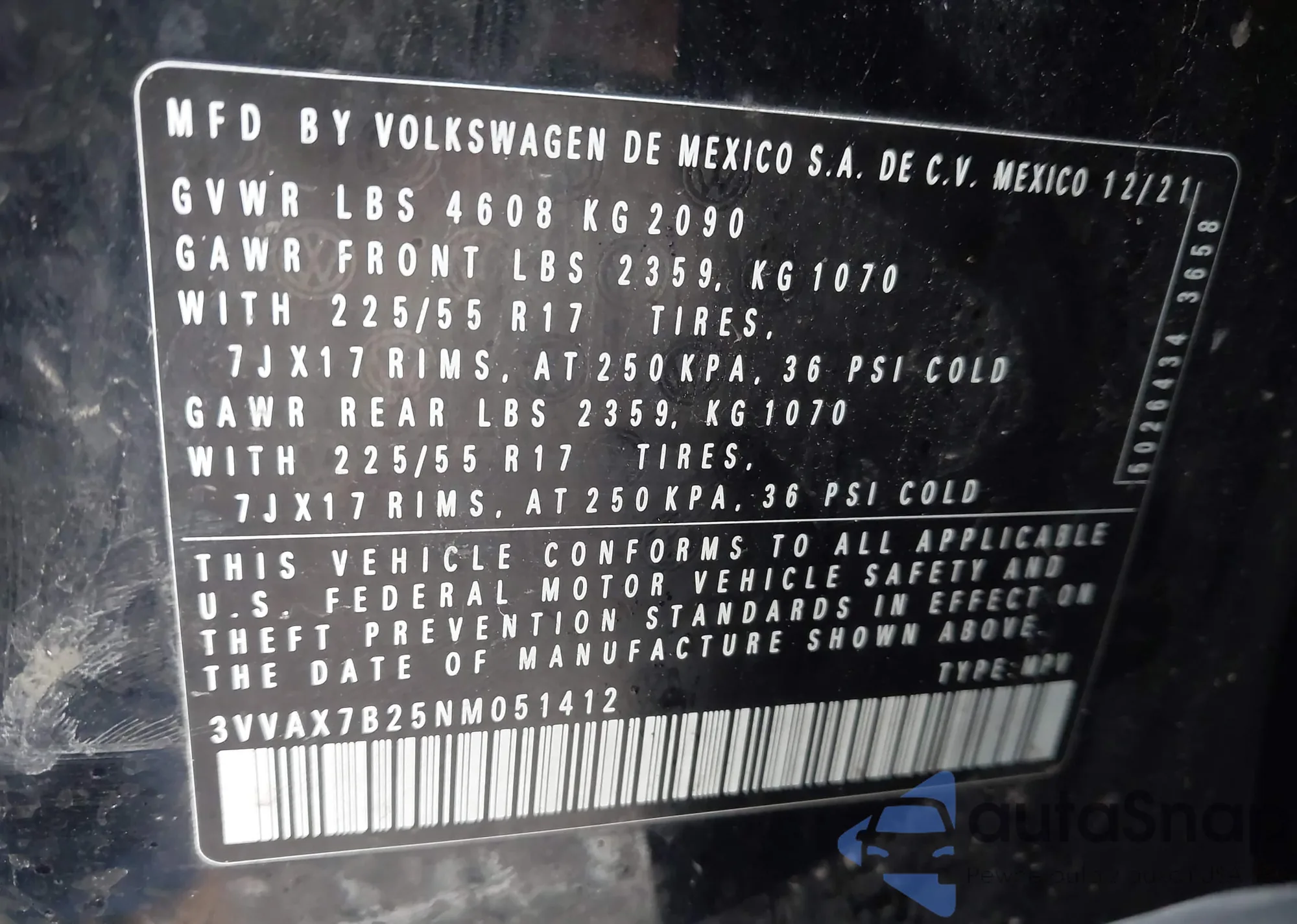• VIN 3VVAX7B25NM051412