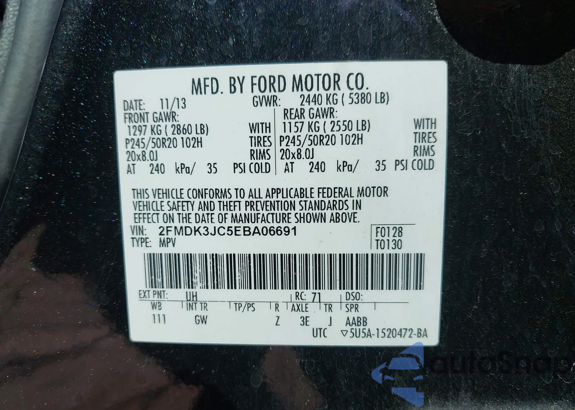 • VIN 2FMDK3JC5EBA06691