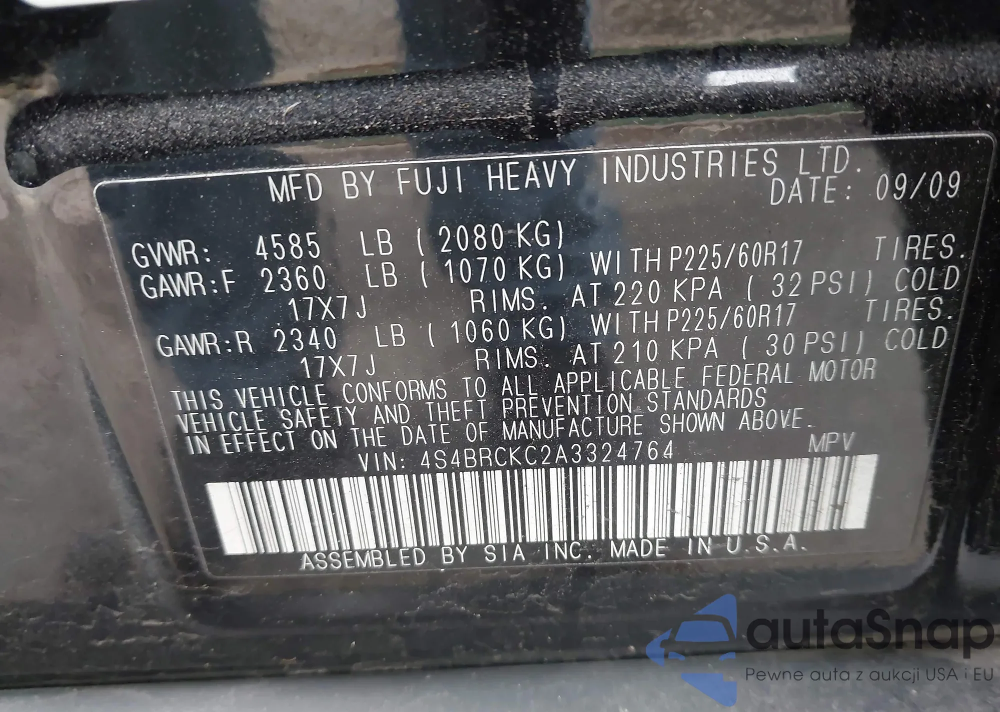 LOT: 43931362 VIN: 4S3BNAN60F3054550