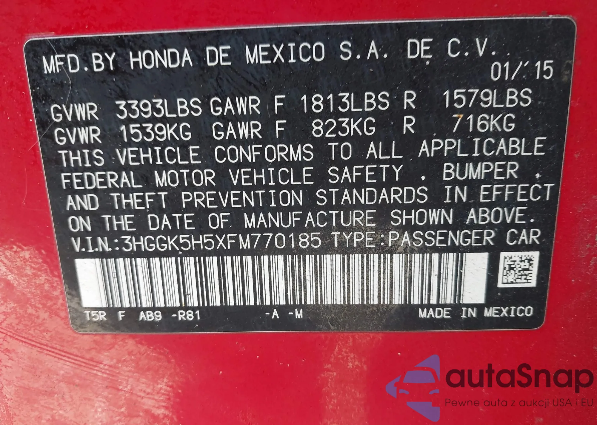 • VIN 3HGGK5H5XFM770185
