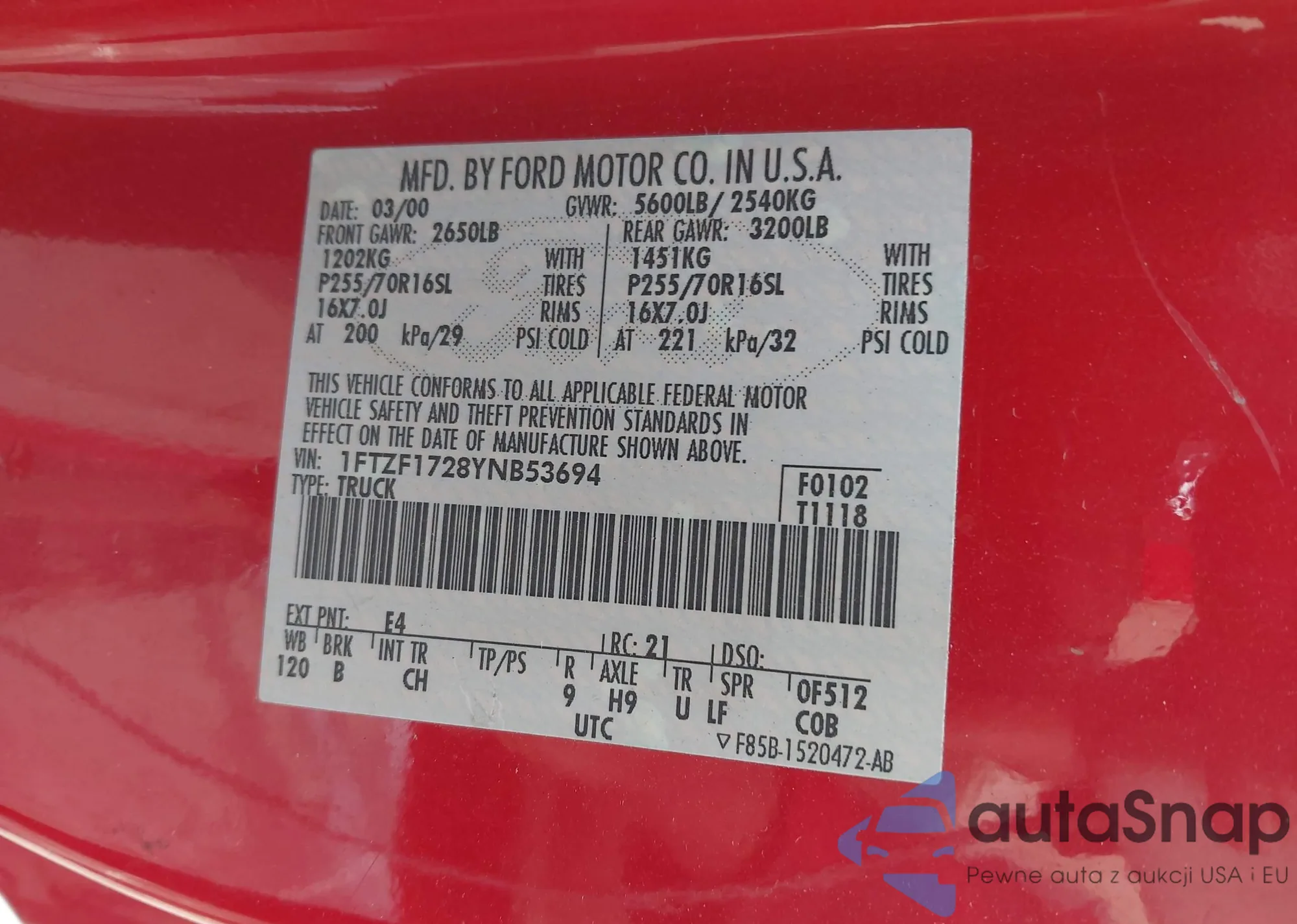 • VIN 1FTZF1728YNB53694