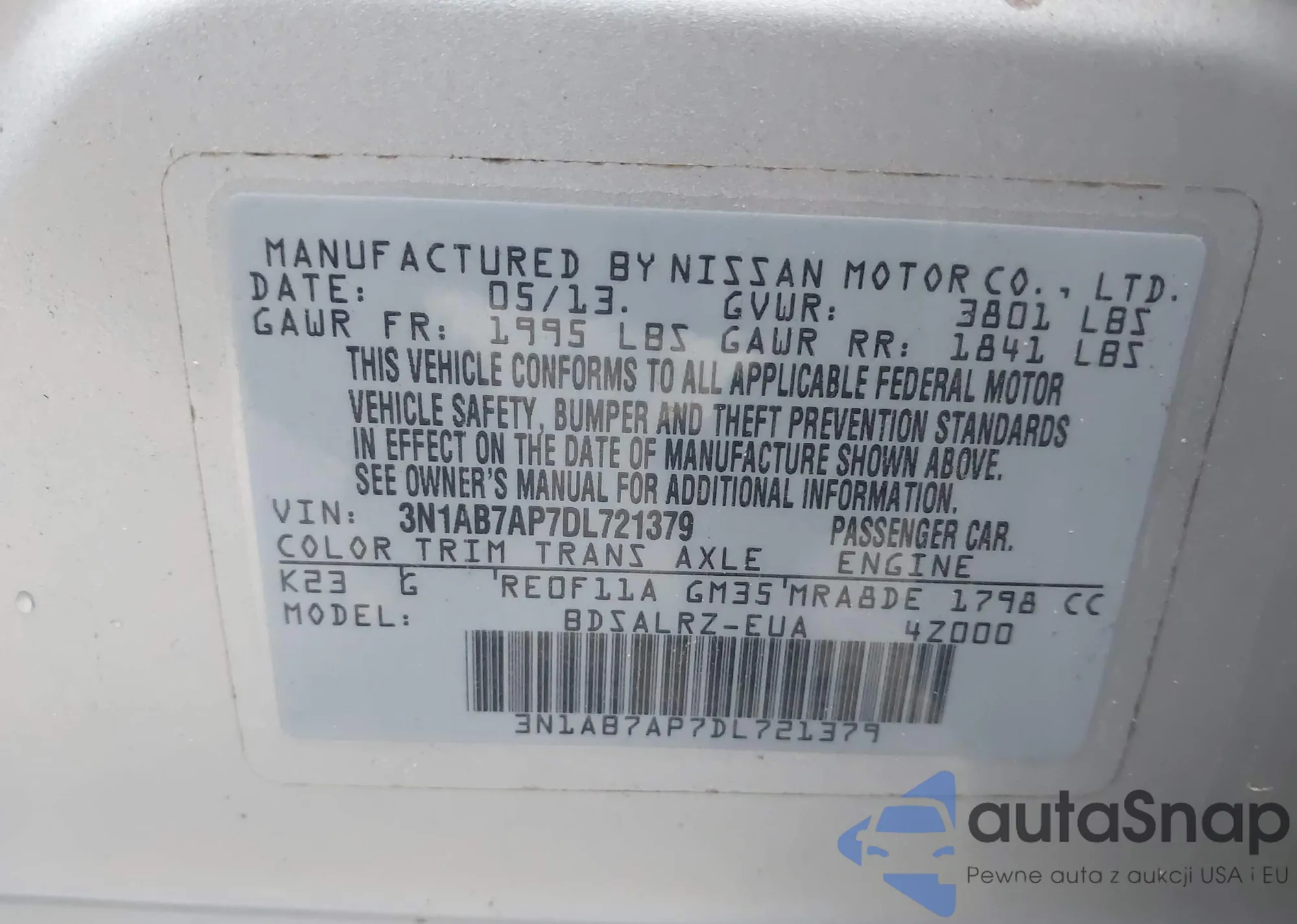 • VIN 3N1AB7AP7DL721379