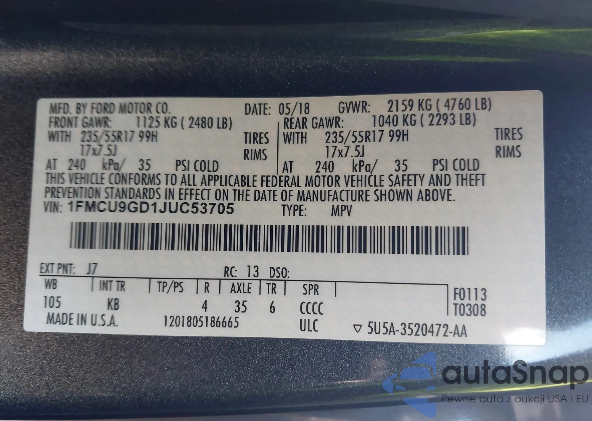 • VIN 1FMCU9GD1JUC53705