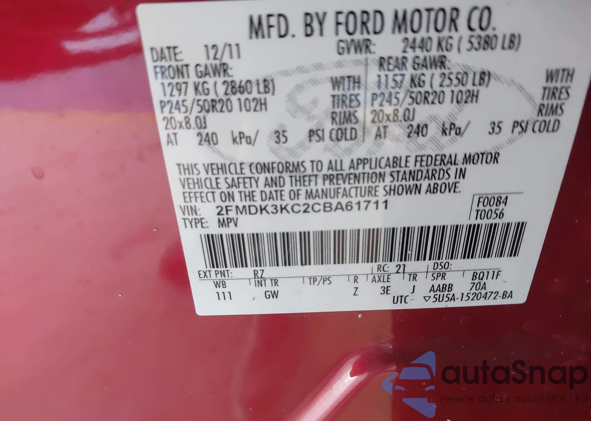 • VIN 2FMDK3KC2CBA61711