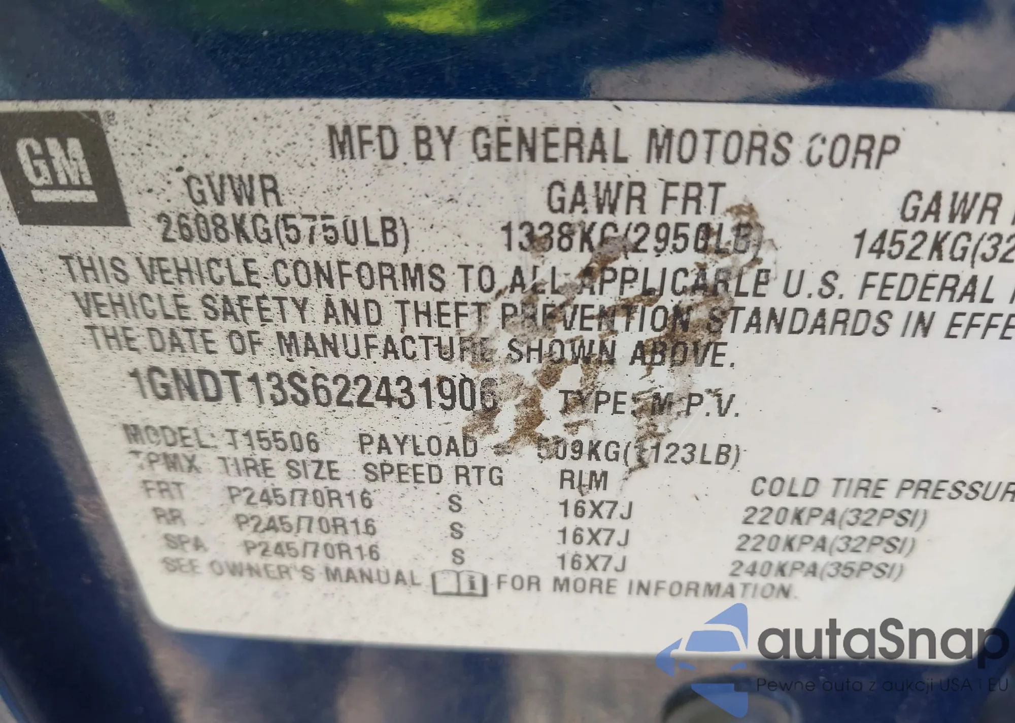 LOT: 43944995 VIN: 1GNDT13S622431906