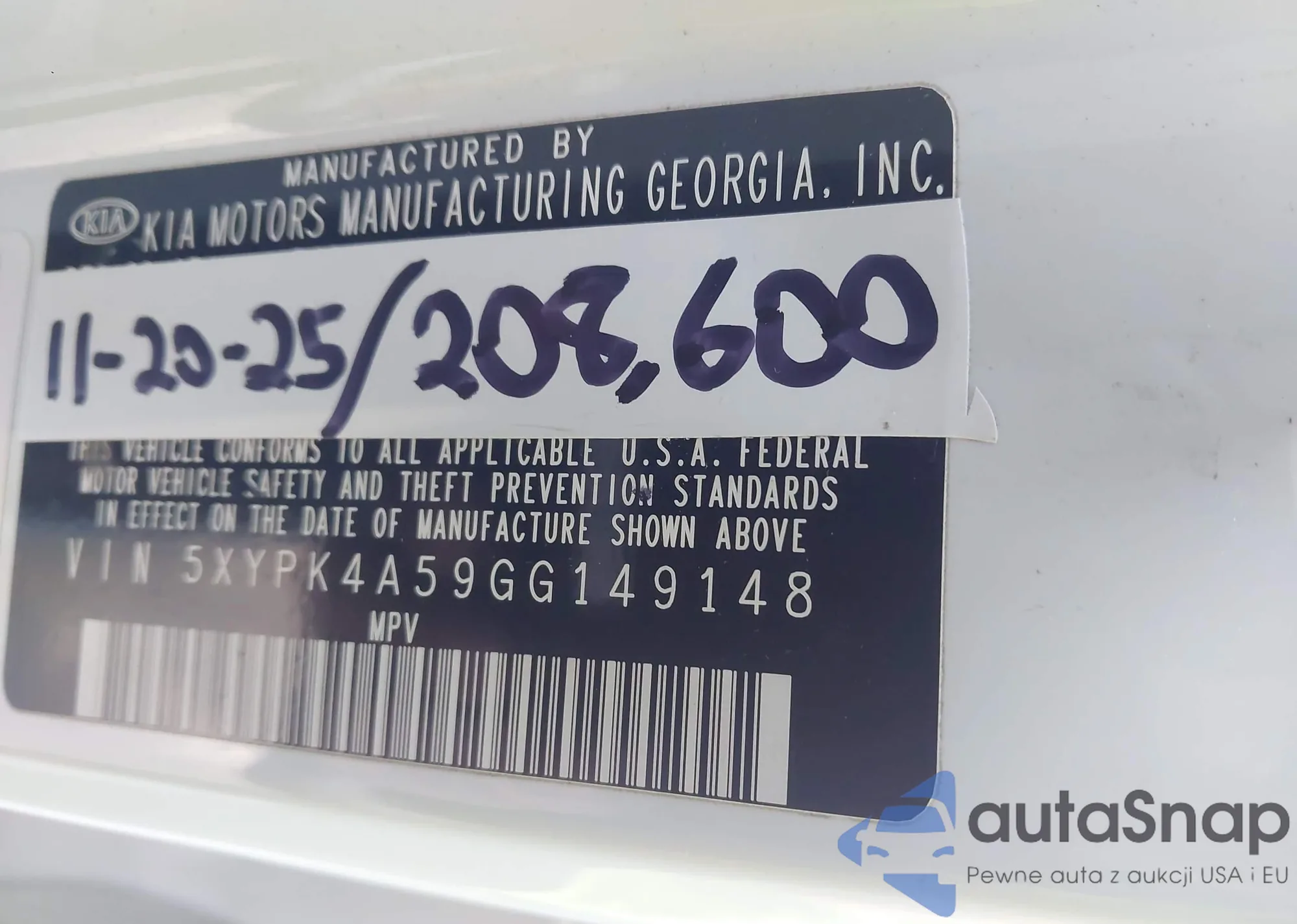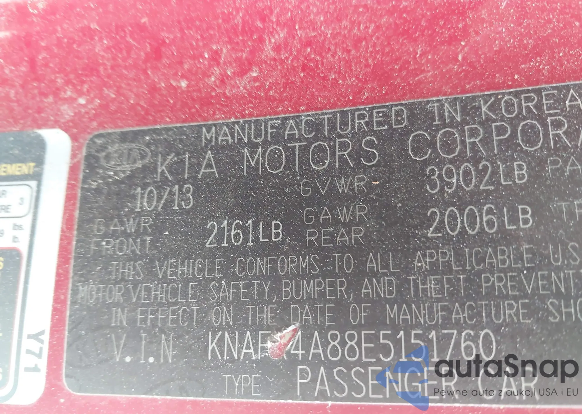 LOT: 43769433 VIN: KNAFX4A88E5151760