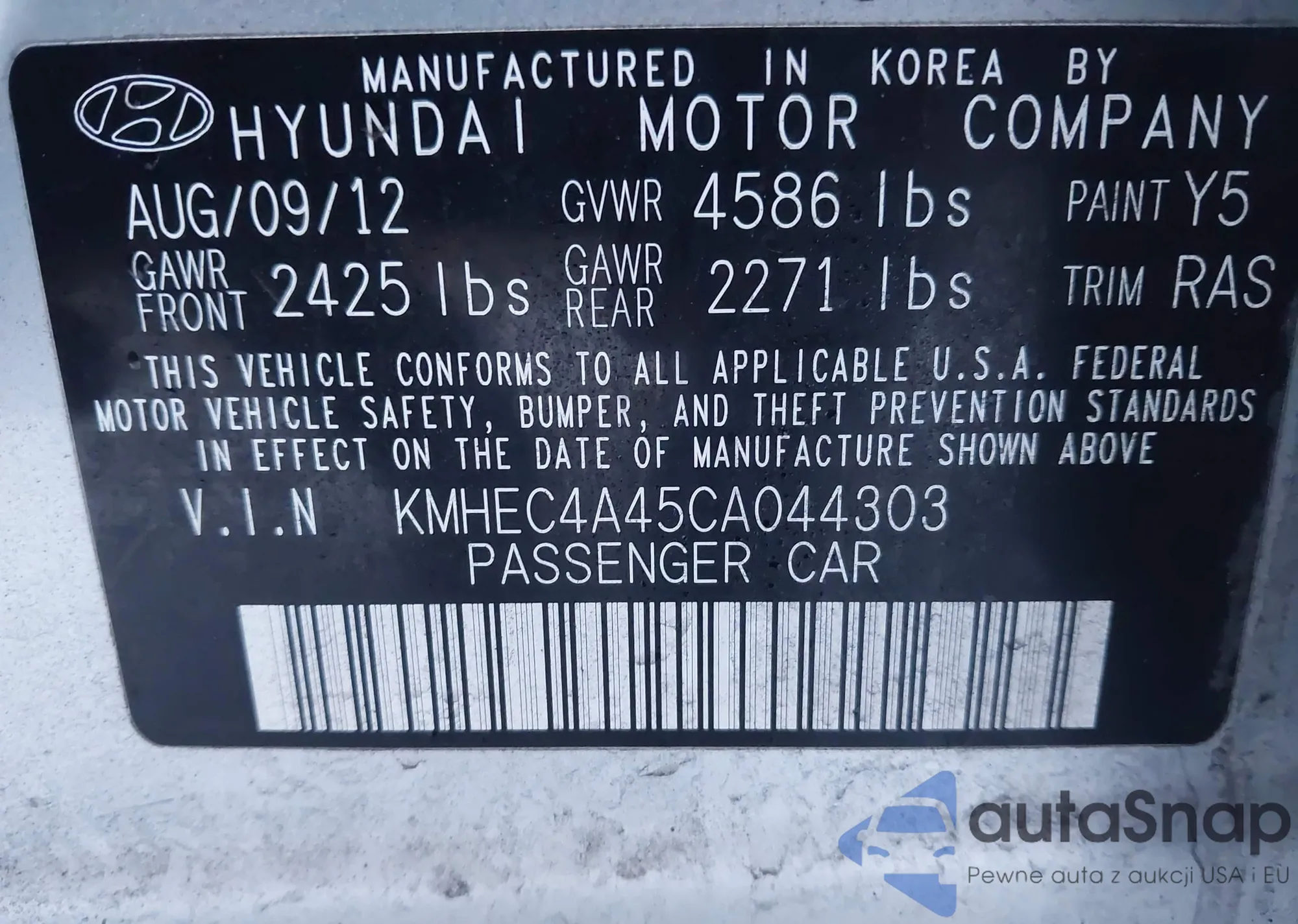 LOT: 44204005 VIN: KMHEC4A45CA044303
