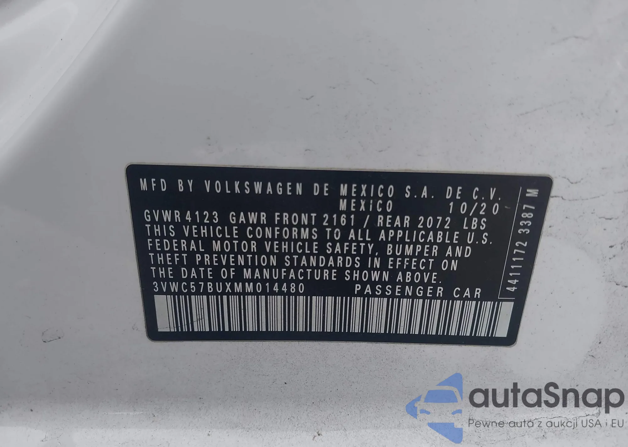 • VIN 3VWC57BUXMM014480