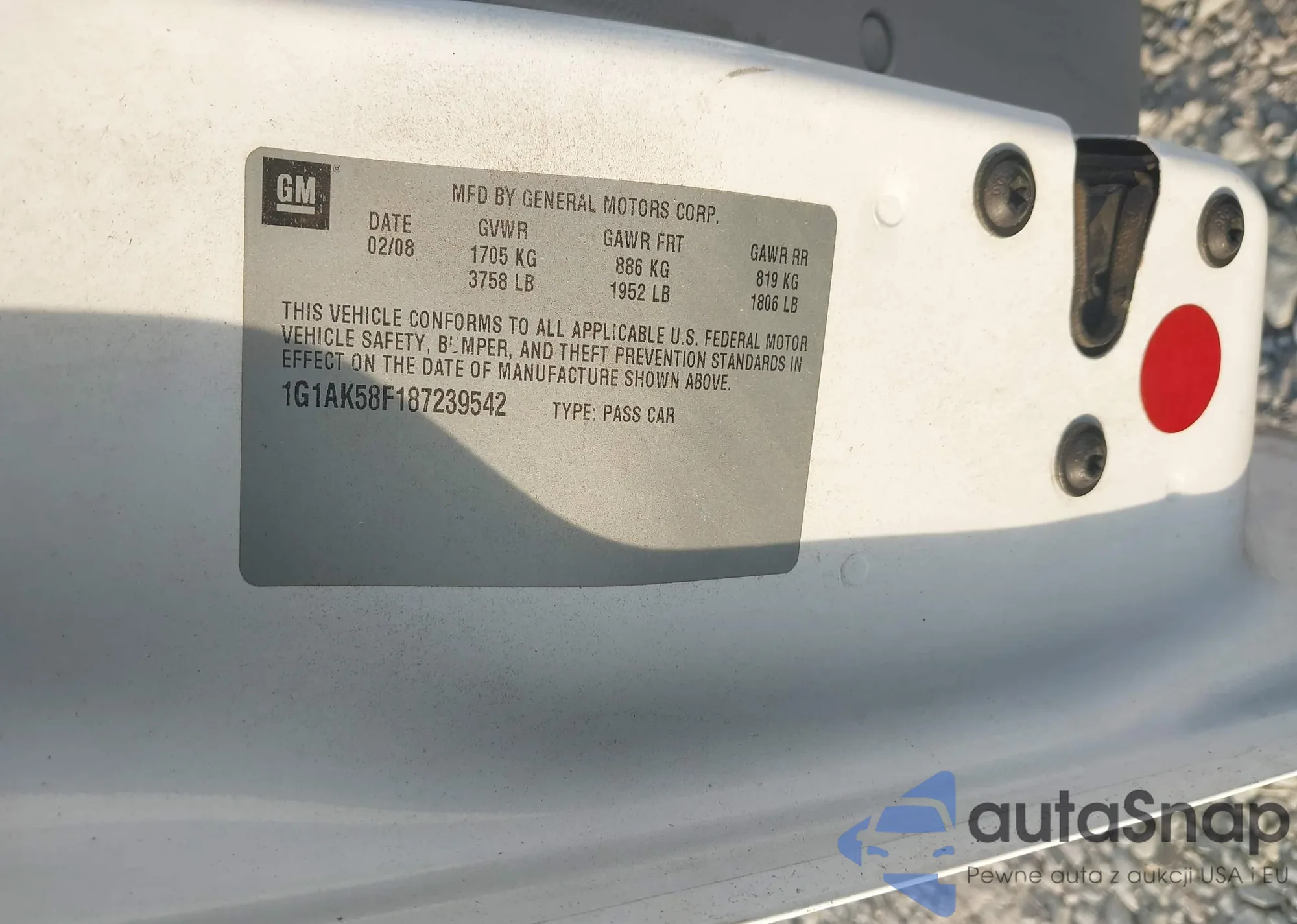 • VIN 1G1AK58F187239542