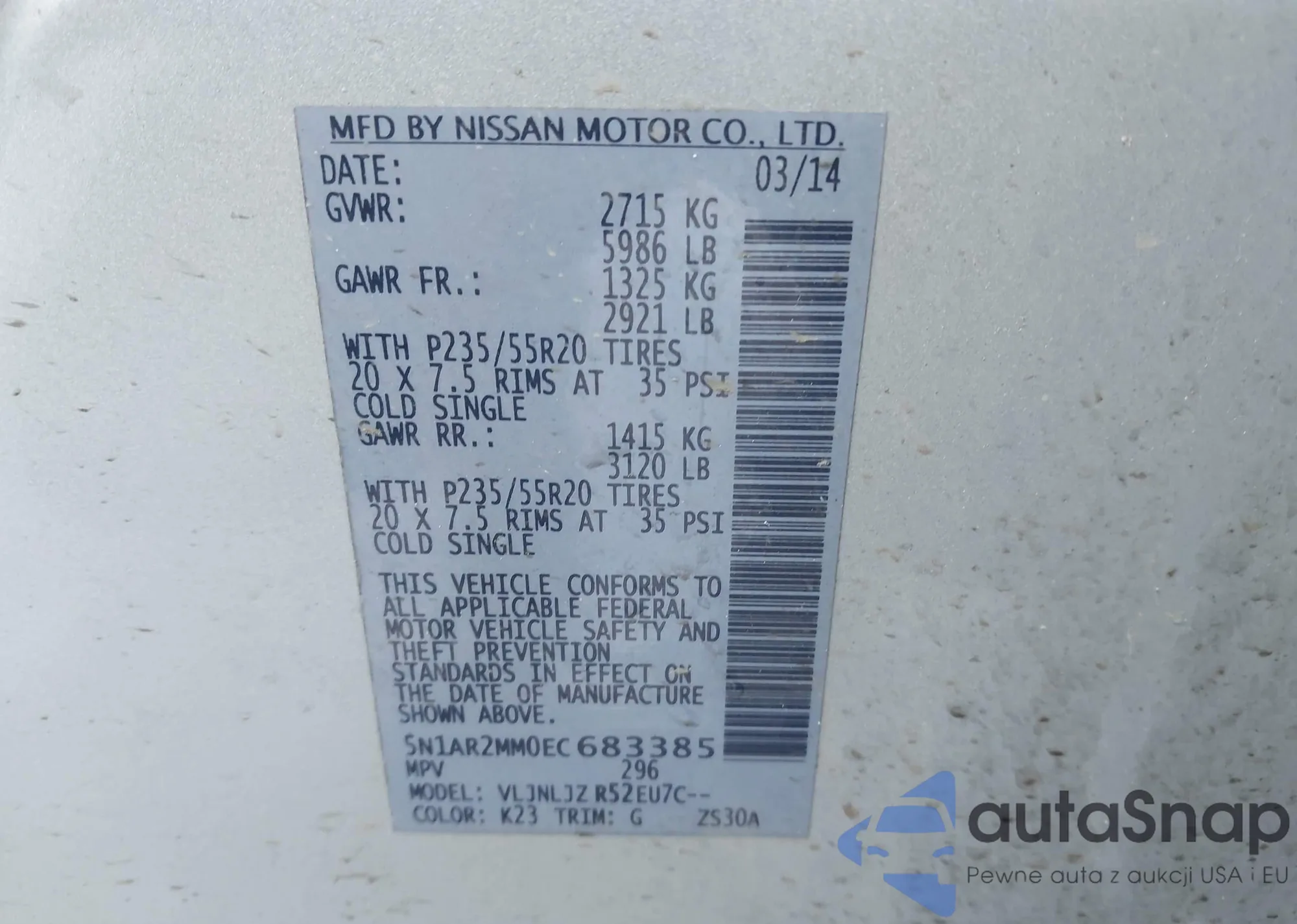 • VIN 5N1AR2MM0EC683385