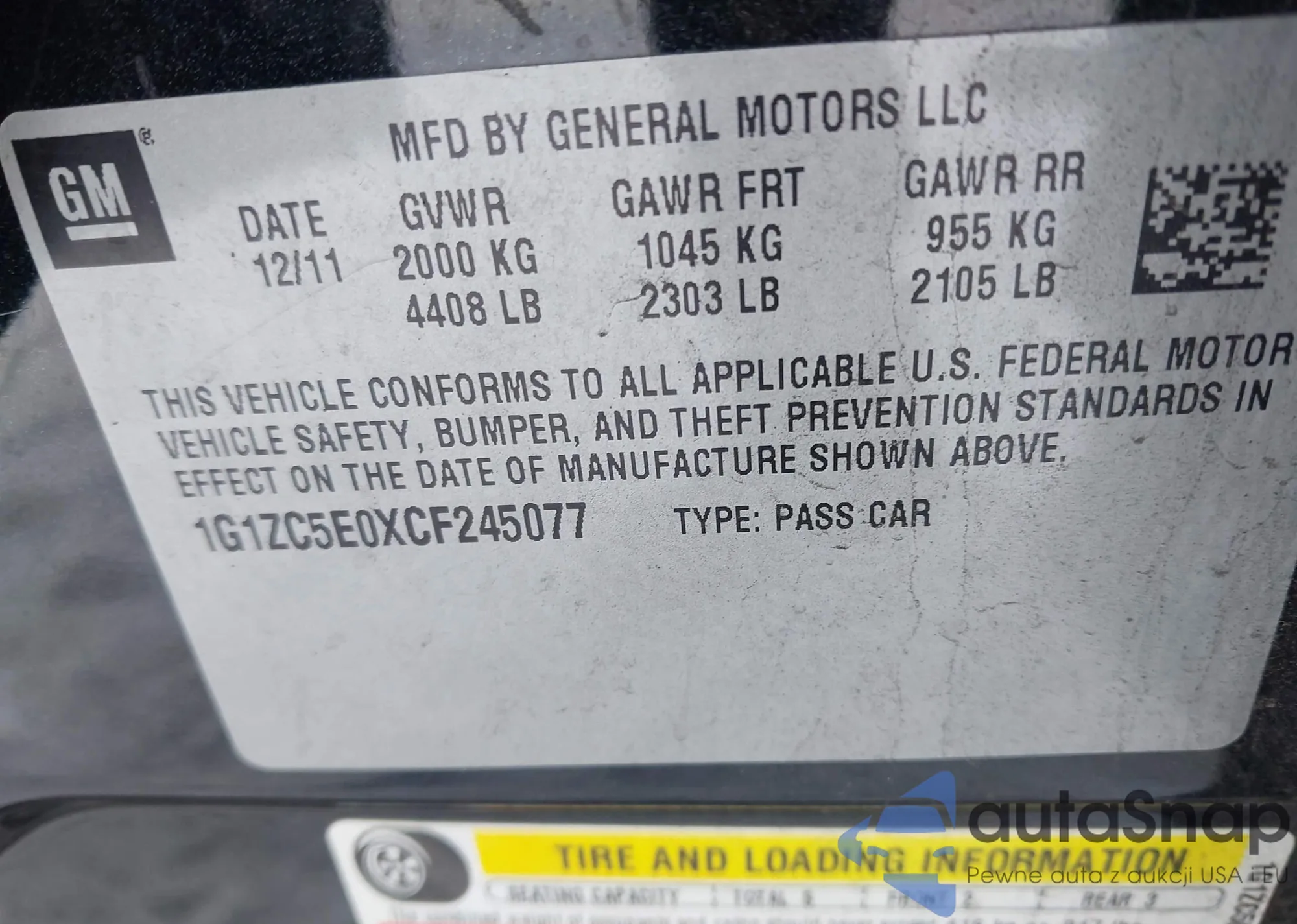 • VIN 1G1ZC5E0XCF245077
