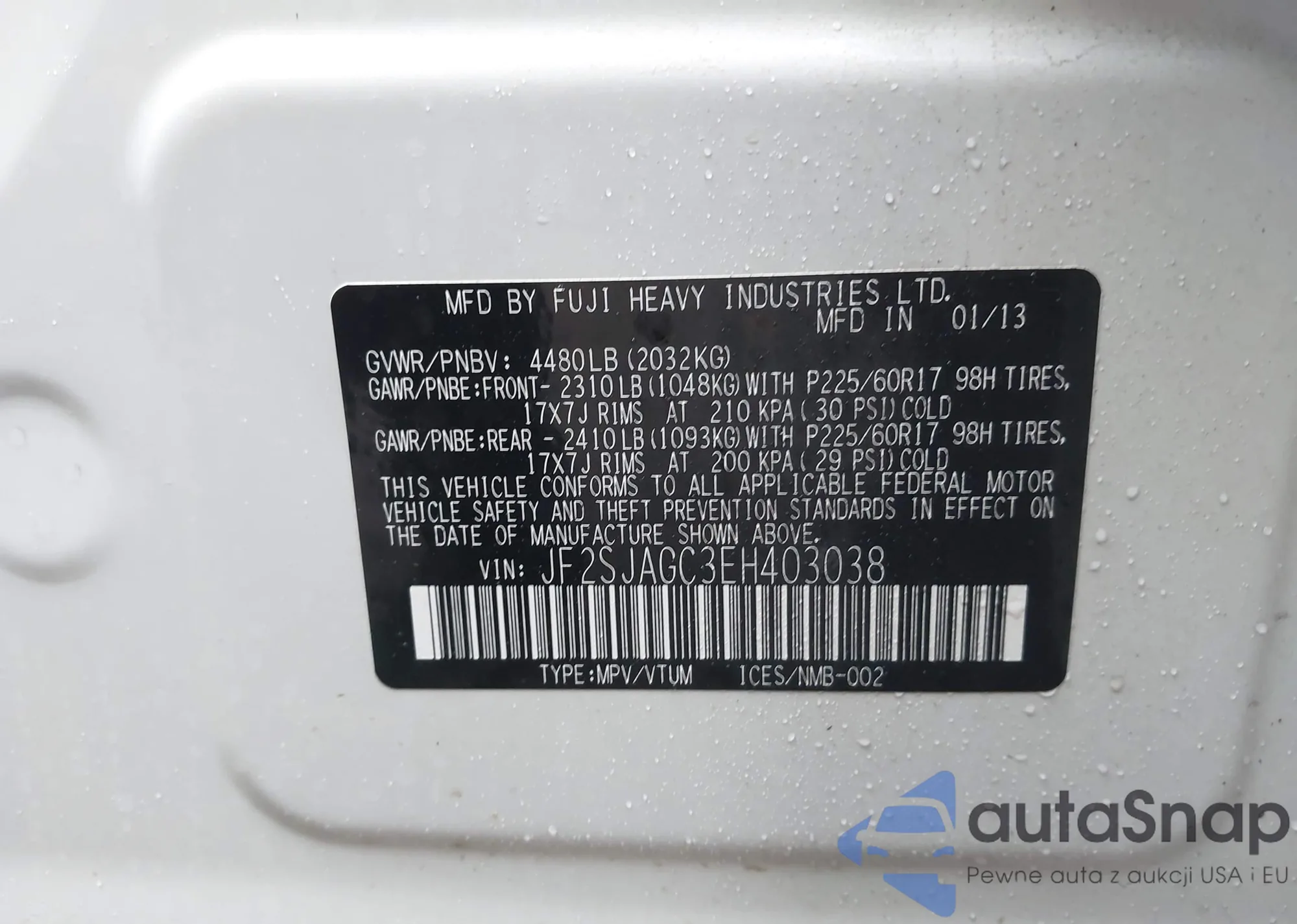 LOT: 43864547 VIN: 1C4PJMCS9GW253731