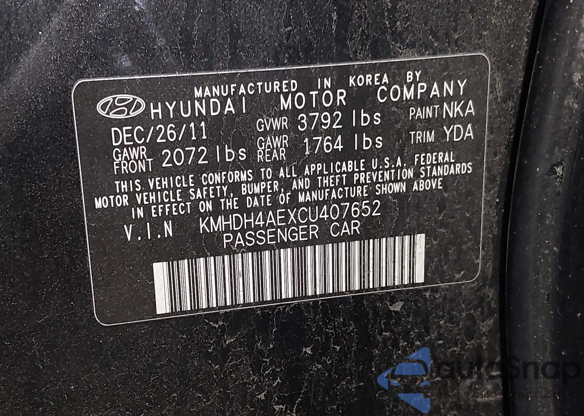 • VIN KMHDH4AEXCU407652