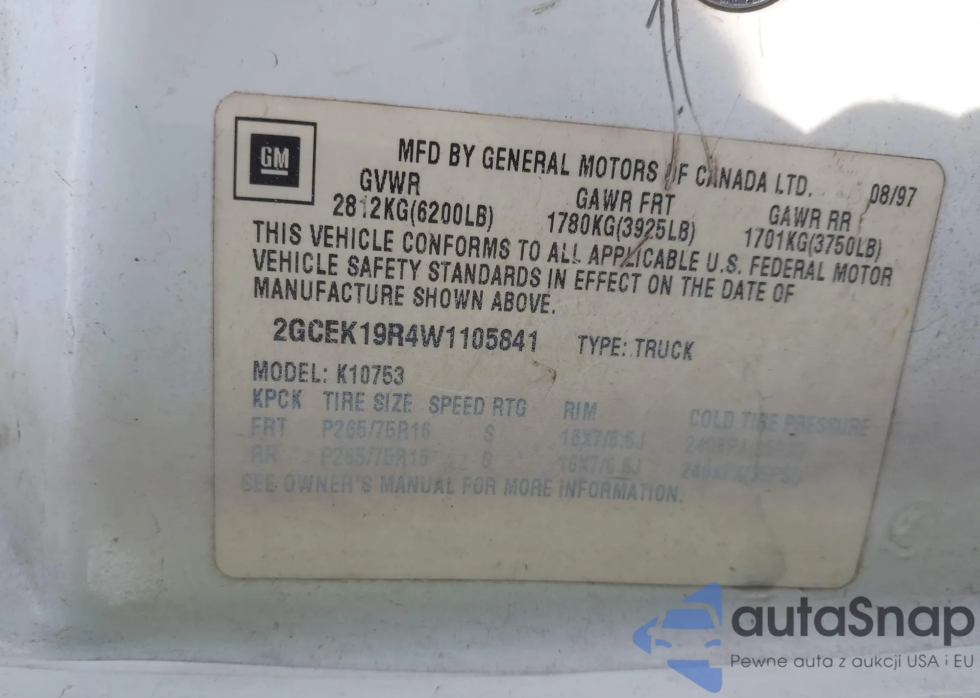 • VIN 3GCPABEK5PG224579