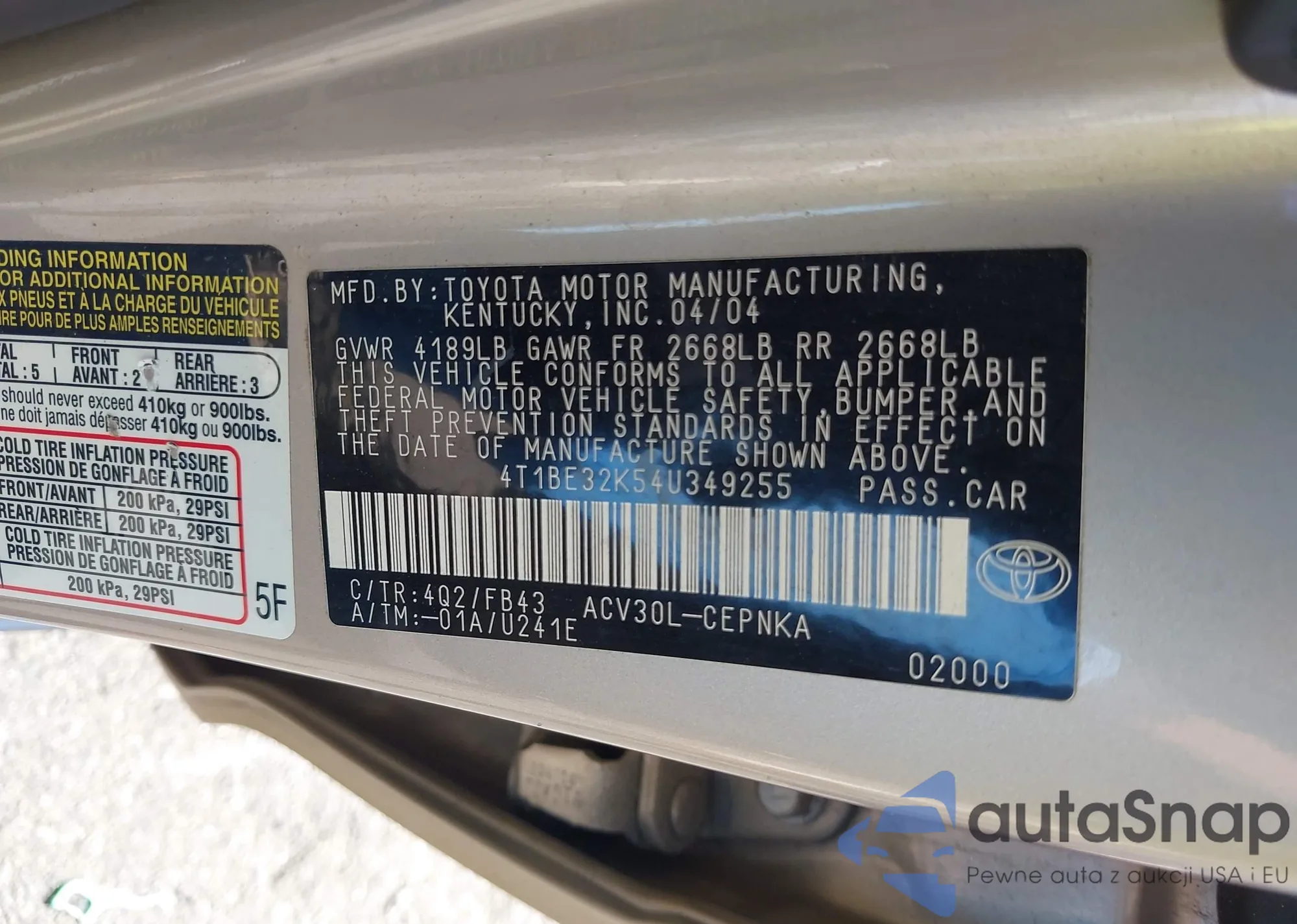• VIN 4T1C11AK1RU224492