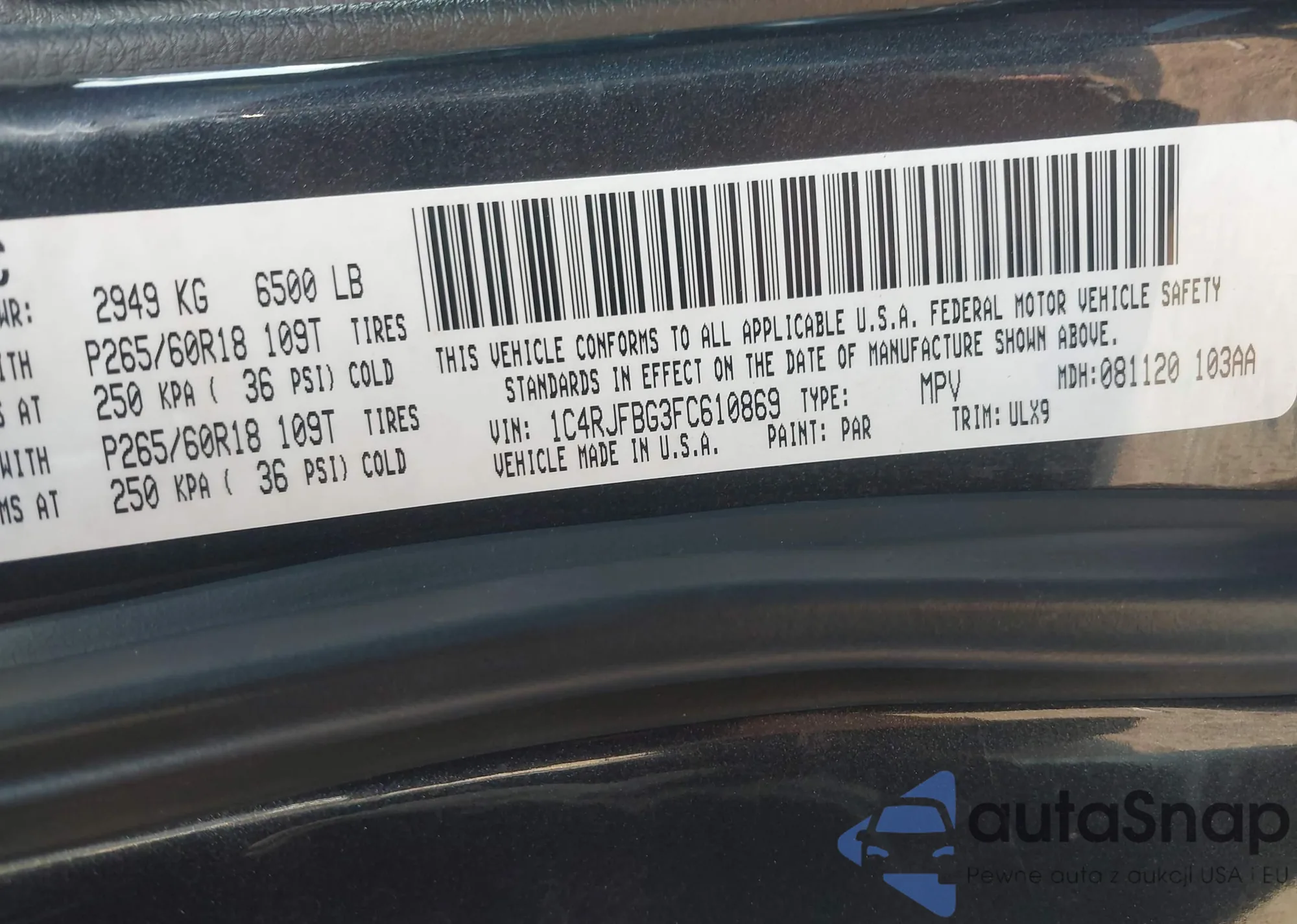• VIN 1C4RJFBG3FC610869