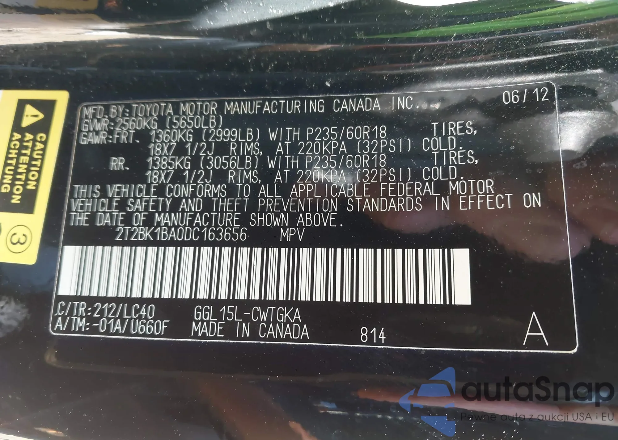 LOT: 44087475 VIN: 2T2BK1BA0DC163656